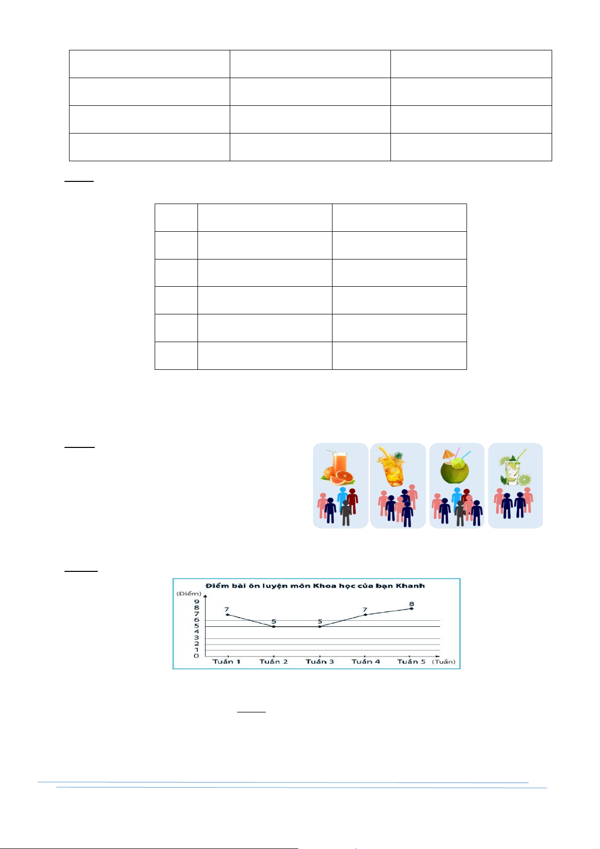 Bài 8: Đọc thông tin từ biểu đồ sau và lập bảng thống kê tương ứng. NÂNG CAO 2 −