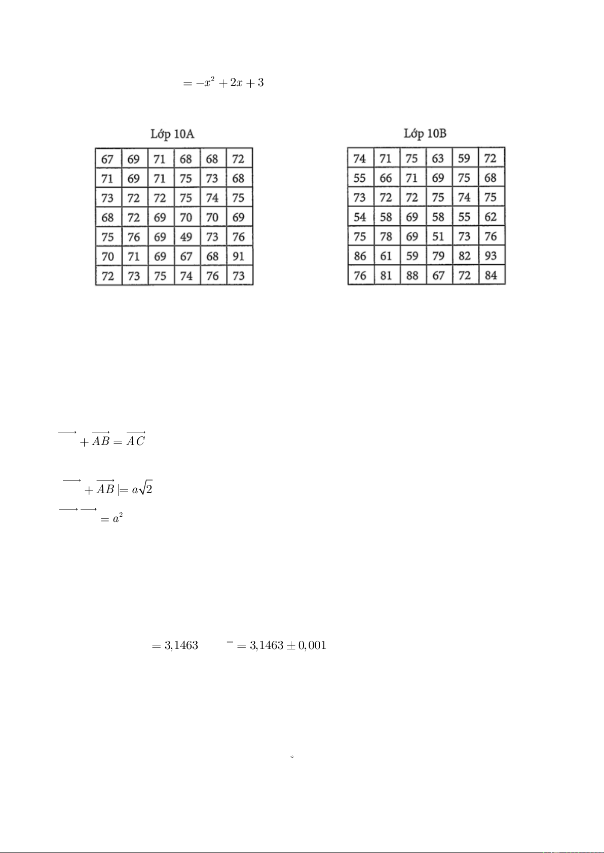 Câu 2. Kết quả kiểm tra môn Toán (thang điểm 100) của hai lớp 10 A và 10 B được cho dưới bảng sau: Khi đó: