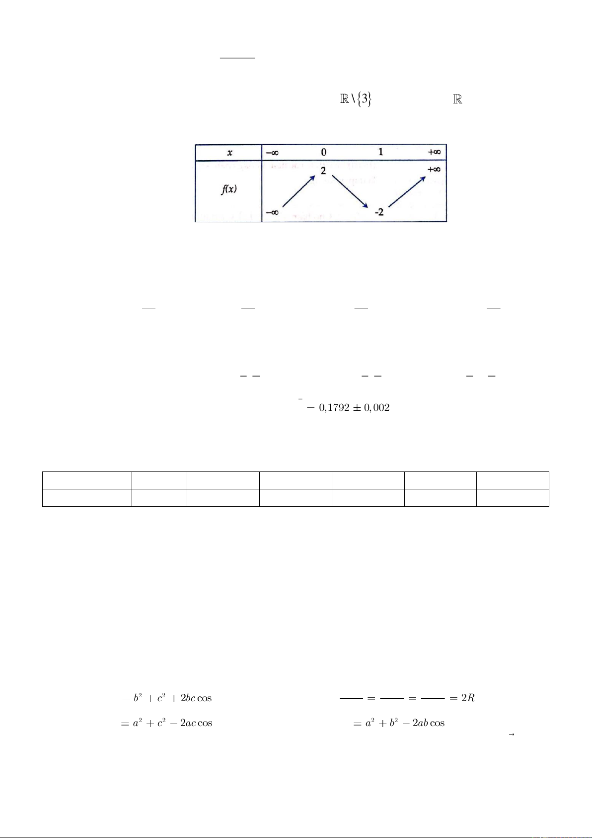 Câu 4. Cho hàm số f x có bảng biến thiên như sau