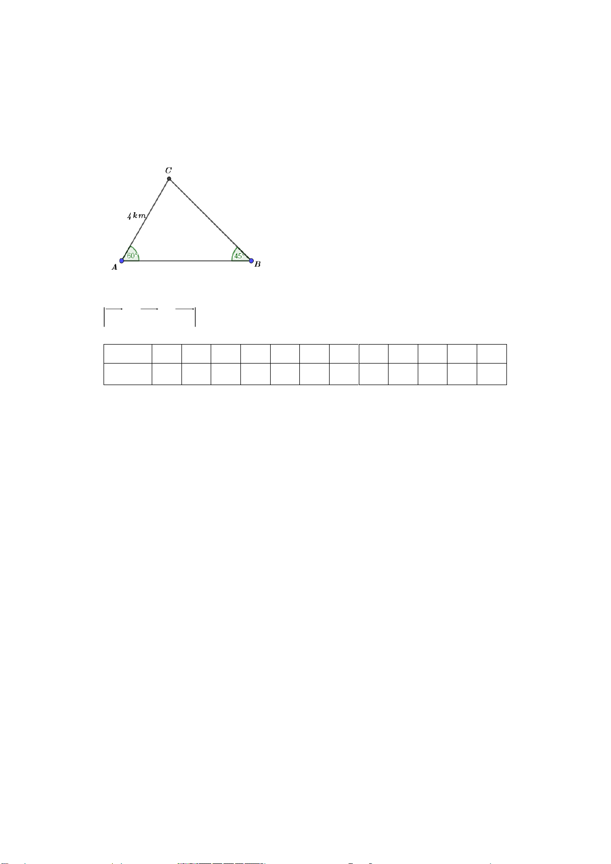 tiếp tục từ B đến C rồi quay lại A . Biết BAC = 60 và ABC = 45 , AC = 4km (tham khảo hình vẽ)