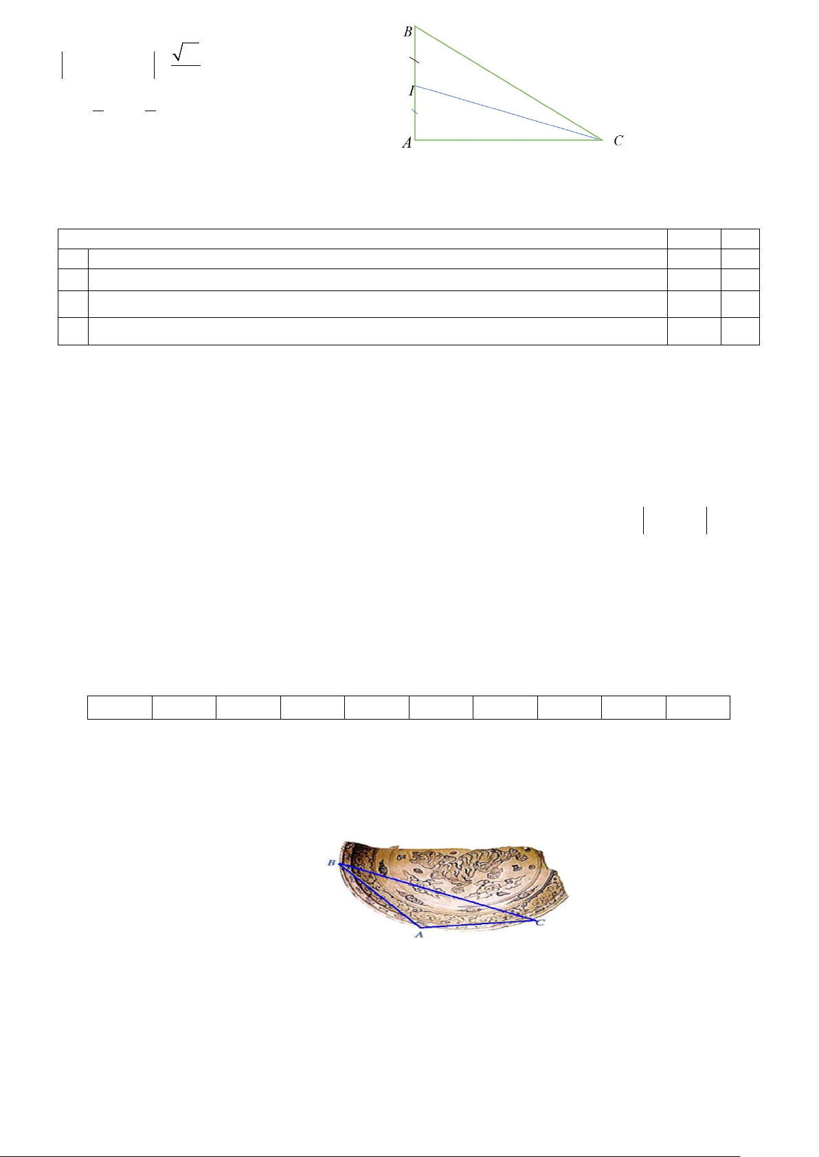 Câu 1: Cho tam giác vuông ABC có các cạnh góc vuông là AB =1, AC = 2 ; I là trung điểm của đoạn