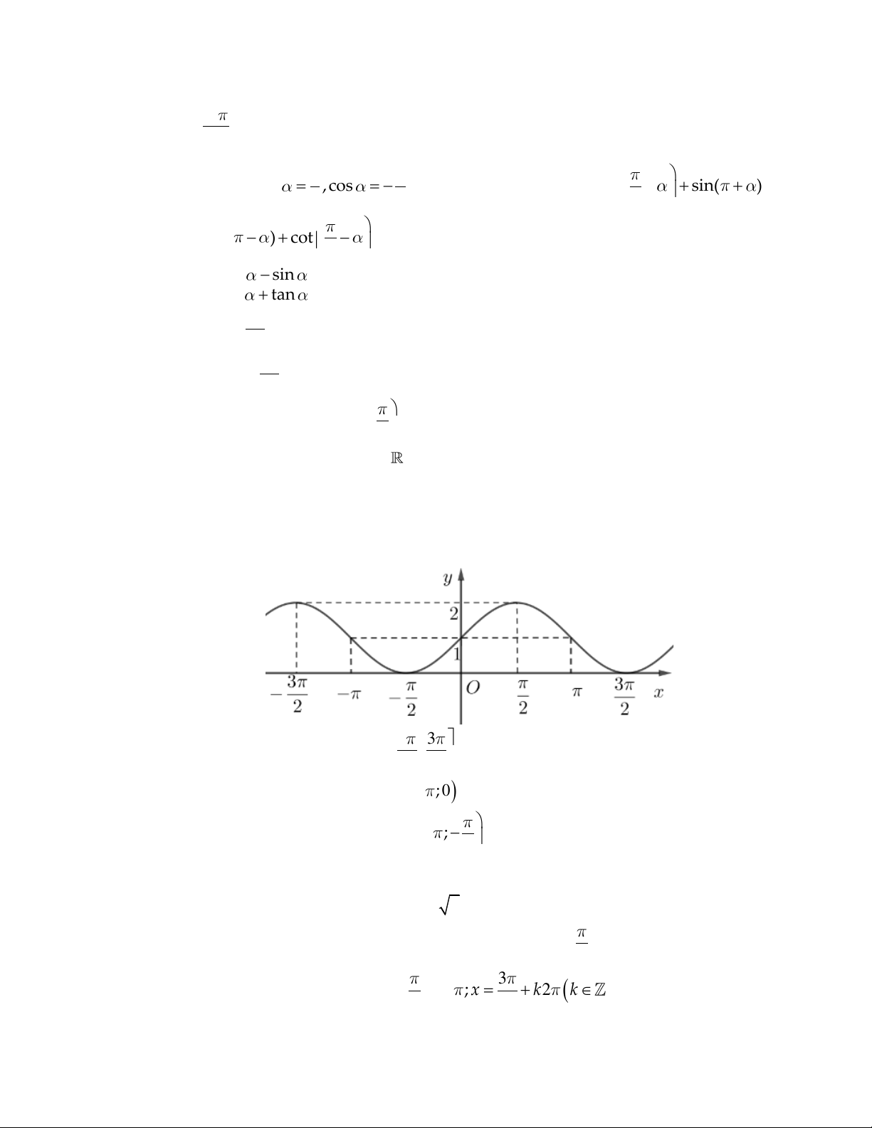 Giá trị nhỏ nhất và giá trị lớn nhất của hàm số y = 4 sin x + 3 −1 lần lượt là:  A. 2 à v 2     B. 2 à v 4   C. 4 2 à v 8     D. 4 2 −1 à v 7    Câu 6.  Đồ thì hình bên  là đồ thị của  hàm số nào?    A. y sin x   B. y cotx   C. y tan x   D. y cos x   Câu 7.