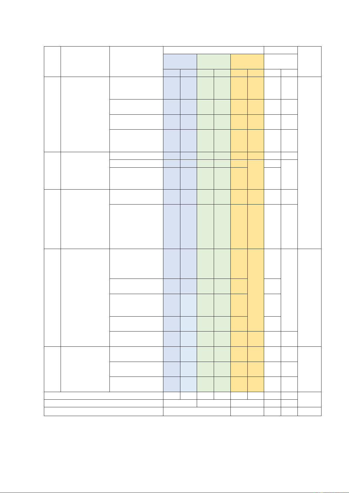DÃY SỐ, CẤP 2.2. Cấp số cộng  0  0  1  0  0  1  40%  2  SỐ CỘNG VÀ  CẤP SỐ  1  1  2.3. Cấp số nhân  0  0  1  0  0  1  NHÂN  CHƯƠNG III.  3.1. Mẫu số liệu  CÁC SỐ LIỆU  1  0  0  0  0  0  1  0  ghép nhóm  ĐẶC TRƯNG  ĐO XU THẾ  3  3.2. Các số đặc  TRUNG TÂM  CỦA MẪU SỐ  trưng đo xu thế  0  0  1  0  0  0  1  0  LIỆU GHÉP  trung tâm  NHÓM  4.1. Đường  thẳng và mặt  phẳng trong  1  0  1  0  0  2  không gian.  CHƯƠNG IV.  4.2. Hai đường  QUAN HỆ  thẳng song song. 1  0  1  0  0  2    1  1  SONG SONG    4.3. Đường  30%  TRONG  thẳng và mặt  1  0  1  0  0  2  KHÔNG  phẳng song song.  GIAN.  4.4. Hai mặt  phẳng song song. 1  0  0  0  0  1    4.5. Phép chiếu  1  0  0  0  0  0  1  0  song song.  5.1. Giới hạn dãy  số. 2    1  0  0  0  3  0  CHƯƠNG V.     5.2. Giới hạn    HÀM SỐ  2    2  0  0  0  4  0  30%  LIÊN TỤC hàm số.    5.3. Hàm số liên  tục. 1    0  0  0  1  1  1    Tổng số câu  16  0  12  0  0  3  28  3  100%  Tỉ lệ (%)  40  30  30  70  30  Tỉ lệ chung (%)  70  30  70  30  100%