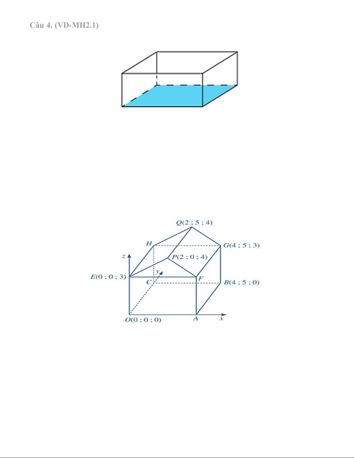 Câu 6. (VD-MH2.1) Với hệ trục tọa độ Oxyz sao cho O nằm trên mặt nước, mặt phẳng