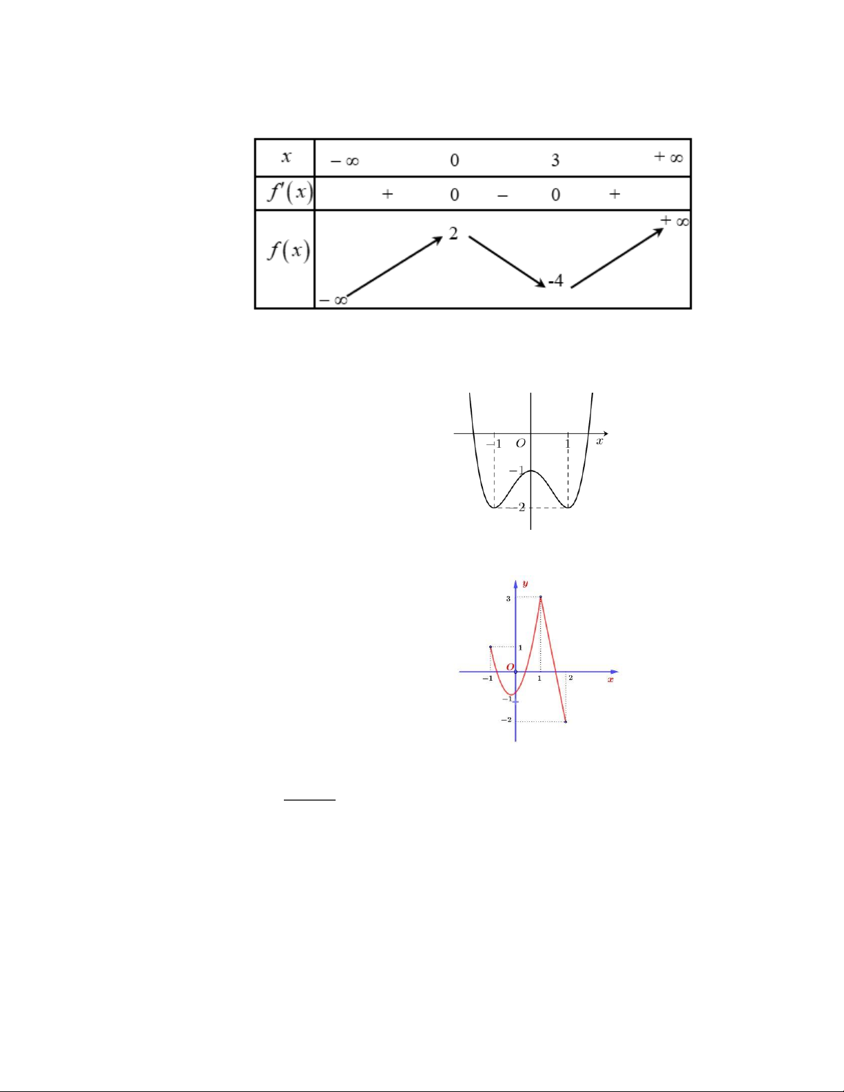 Câu 1. (NB-TD1.3) Cho hàm số y = f ( x) có bảng biến thiên như sau: x ∞ 1 3 +∞ y' + 0 0 + 0 +∞ y ∞ -2