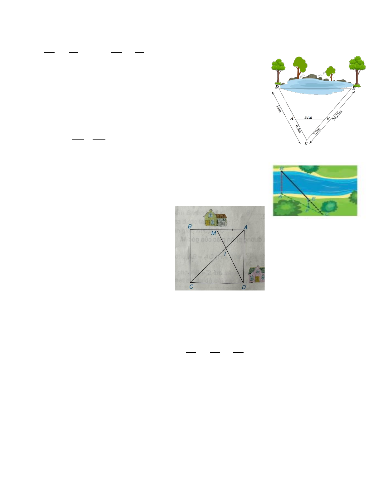 K, E sao cho KA = 6, 4m , KB = 7,2m, và đo khoảng cách giữa A và B làAB = 32m. KB AK a) Chứng minh = KE KD b) Chứng minh AB//DE