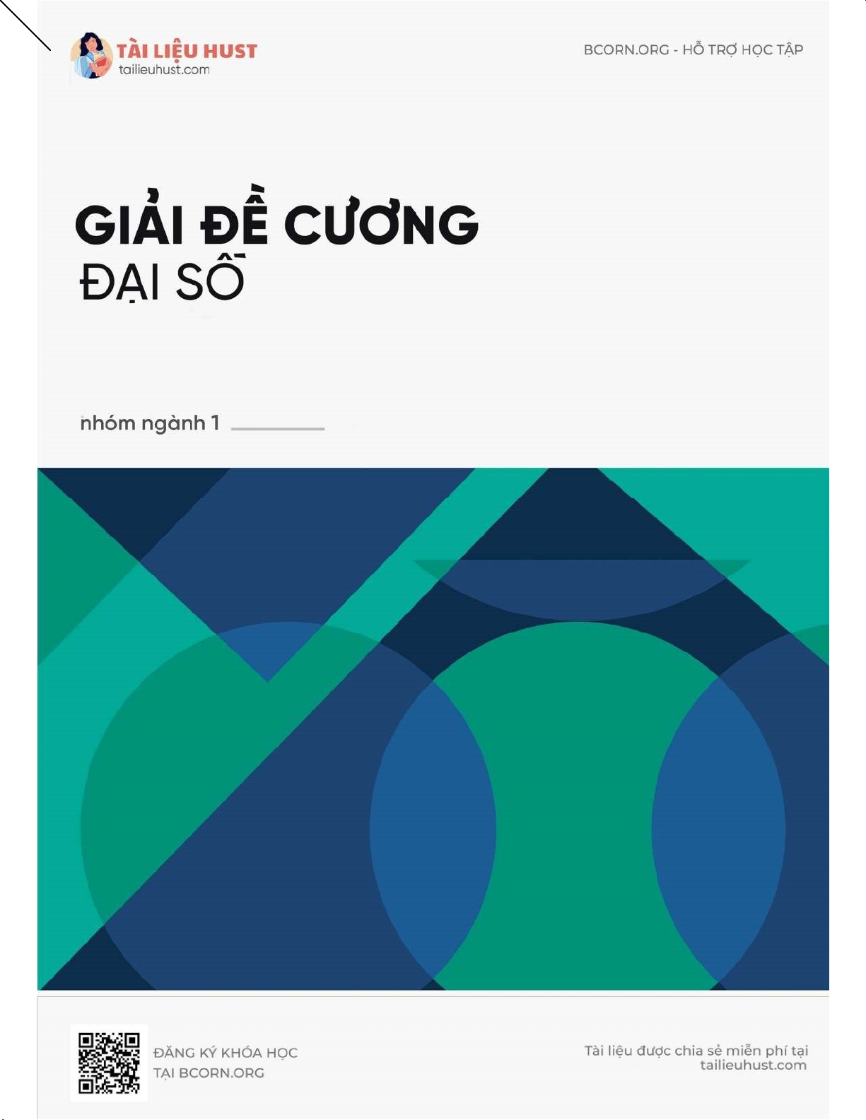 Cuốn tài liệu “Giải đề cương Đại số” được sưu tầm và biên soạn lại với mục đích hỗ trợ các bạn sinh viên trường Đại học Bách Khoa Hà Nội có nguồn tài liệu học tập chất lượng, phục vụ cho việc ôn tập cũng như luyện thi dễ dàng hơn ở học phần Đại số tuyến tính.