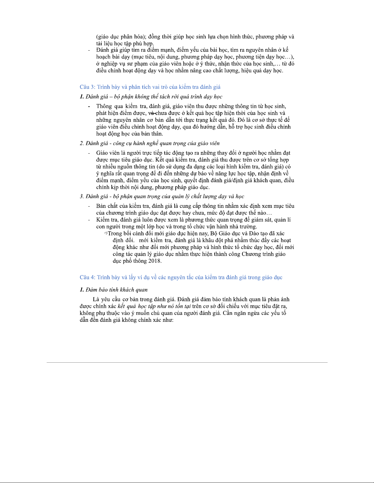 ĐỀ CƯƠNG ĐÁNH GIÁ GIÁO DỤC VÀ CÁC PHƯƠNG PHÁP ĐÁNH GIÁ Trong GD