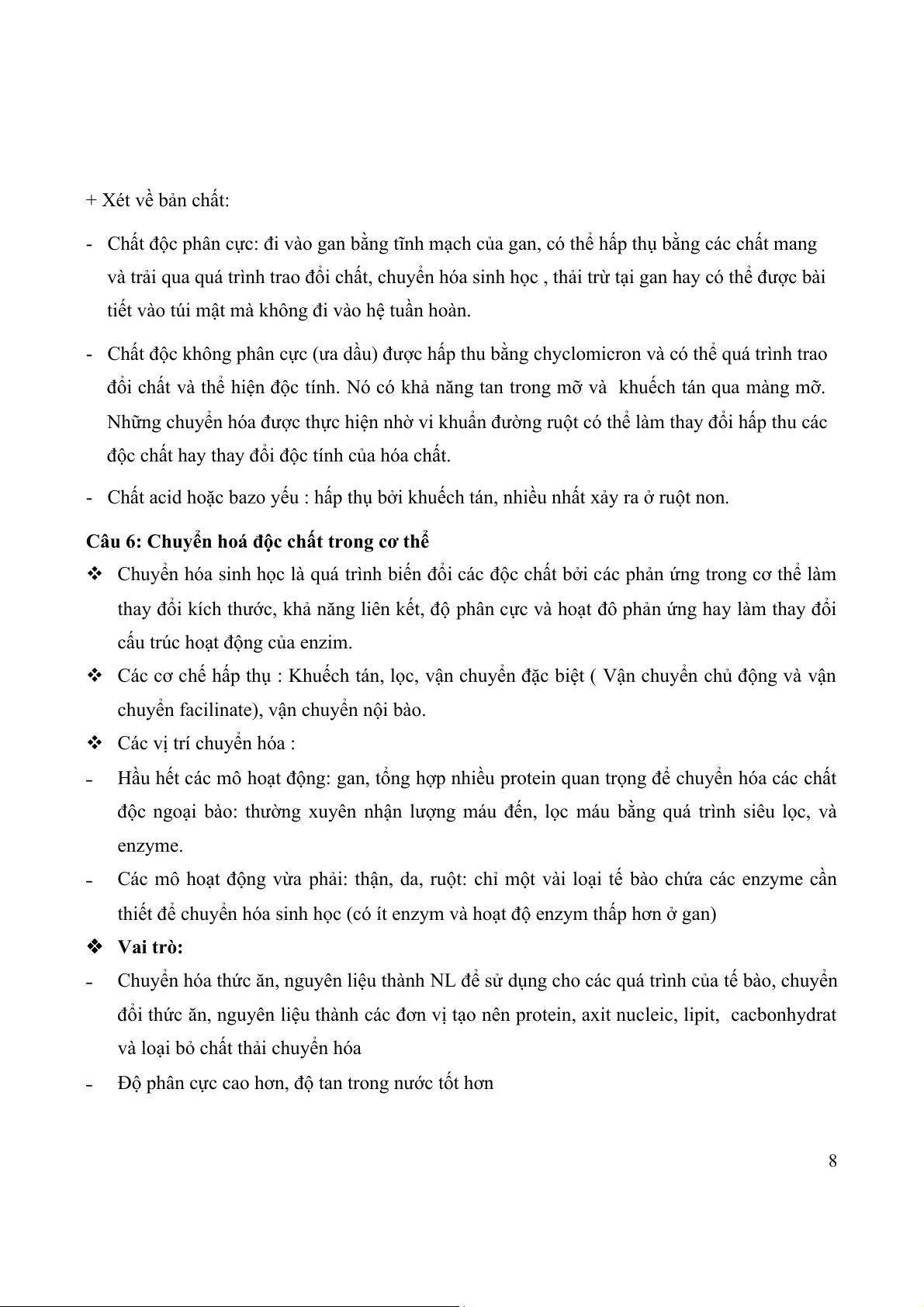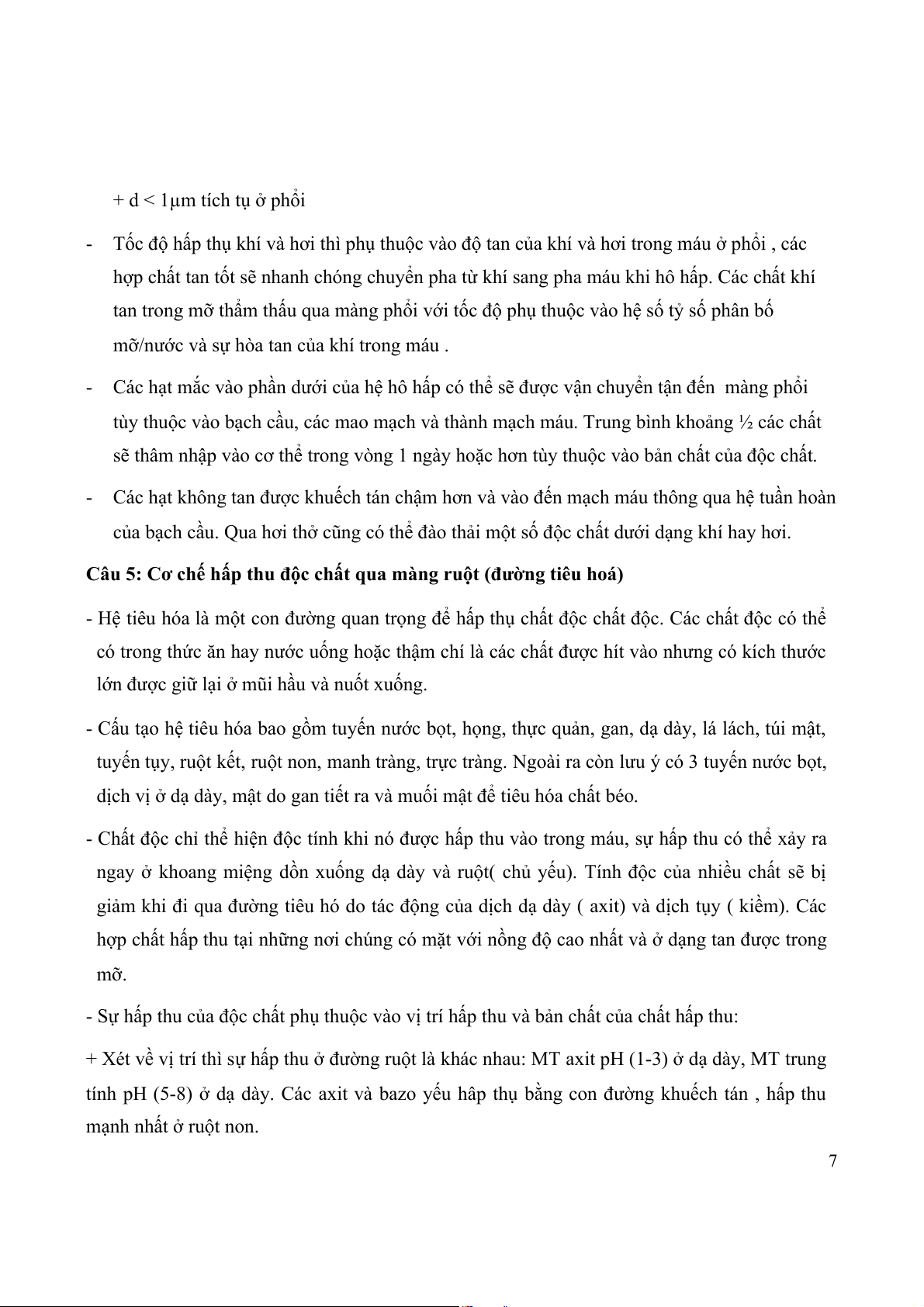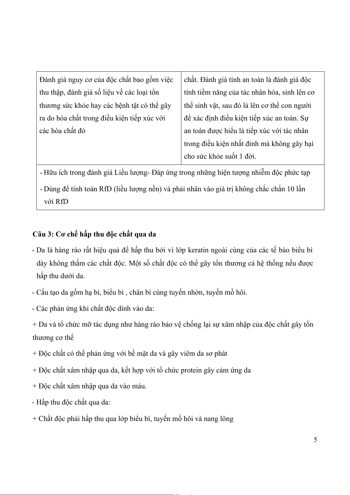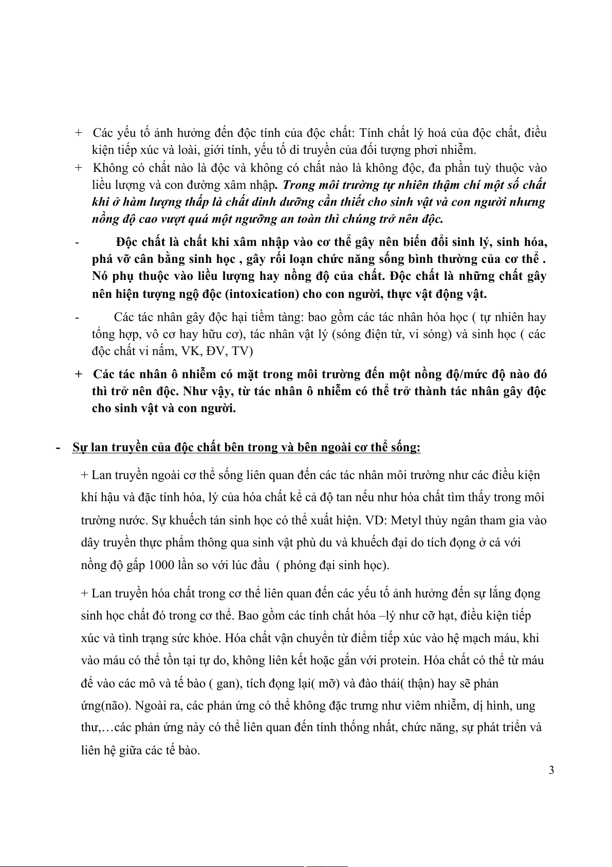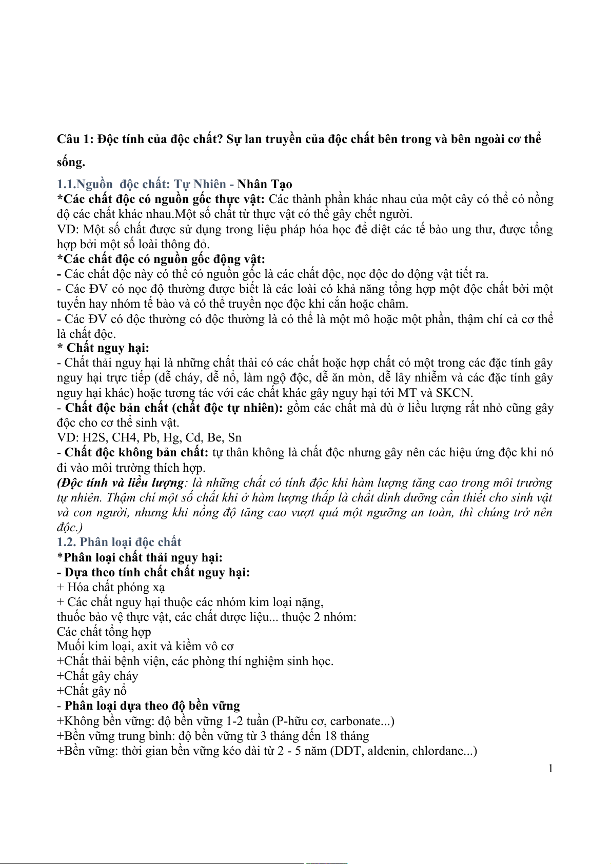 Câu 1: Độc tính của độc chất? Sự lan truyền của độc chất bên trong và bên ngoài cơ thể sống.