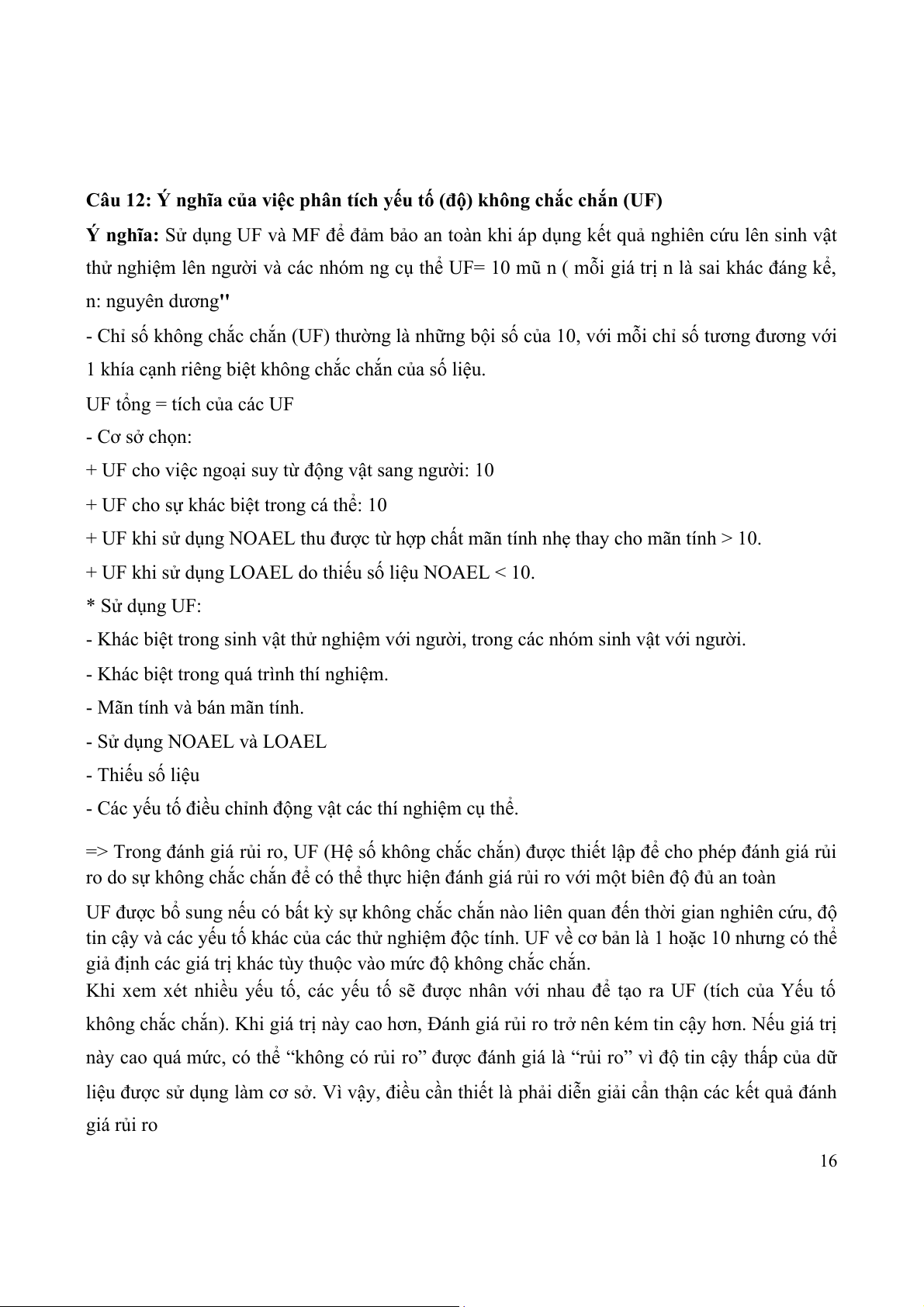 Câu 12: Ý nghĩa của việc phân tích yếu tố (độ) không chắc chắn (UF)