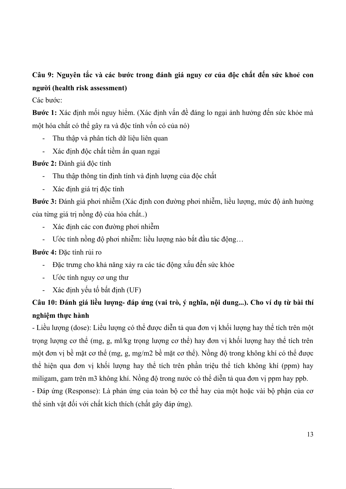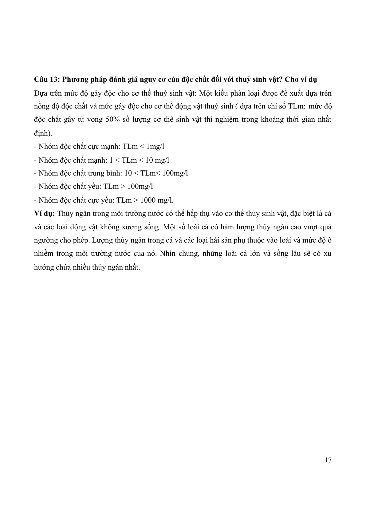 Câu 13: Phương pháp đánh giá nguy cơ của độc chất đối với thuỷ sinh vật? Cho ví dụ