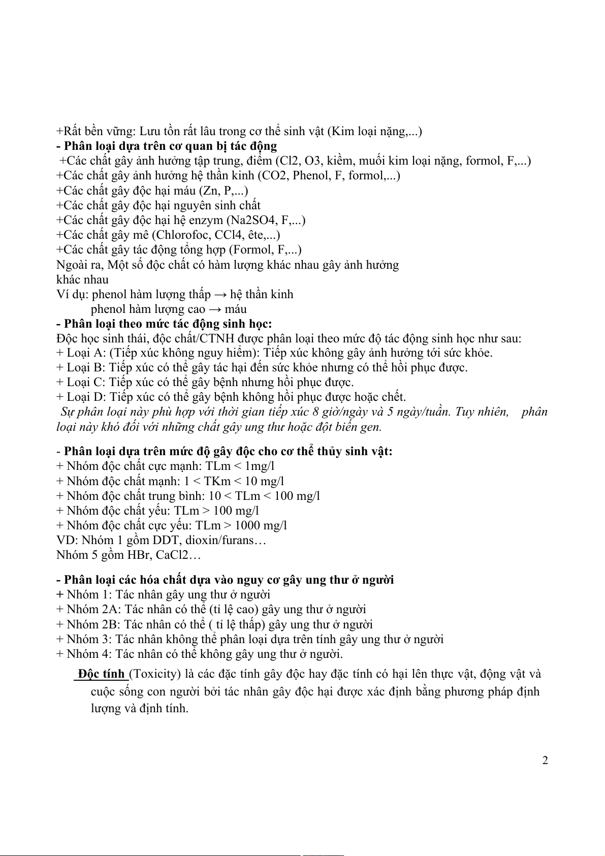 (Độc tính và liều lượng: là những chất có tính độc khi hàm lượng tăng cao trong môi trường