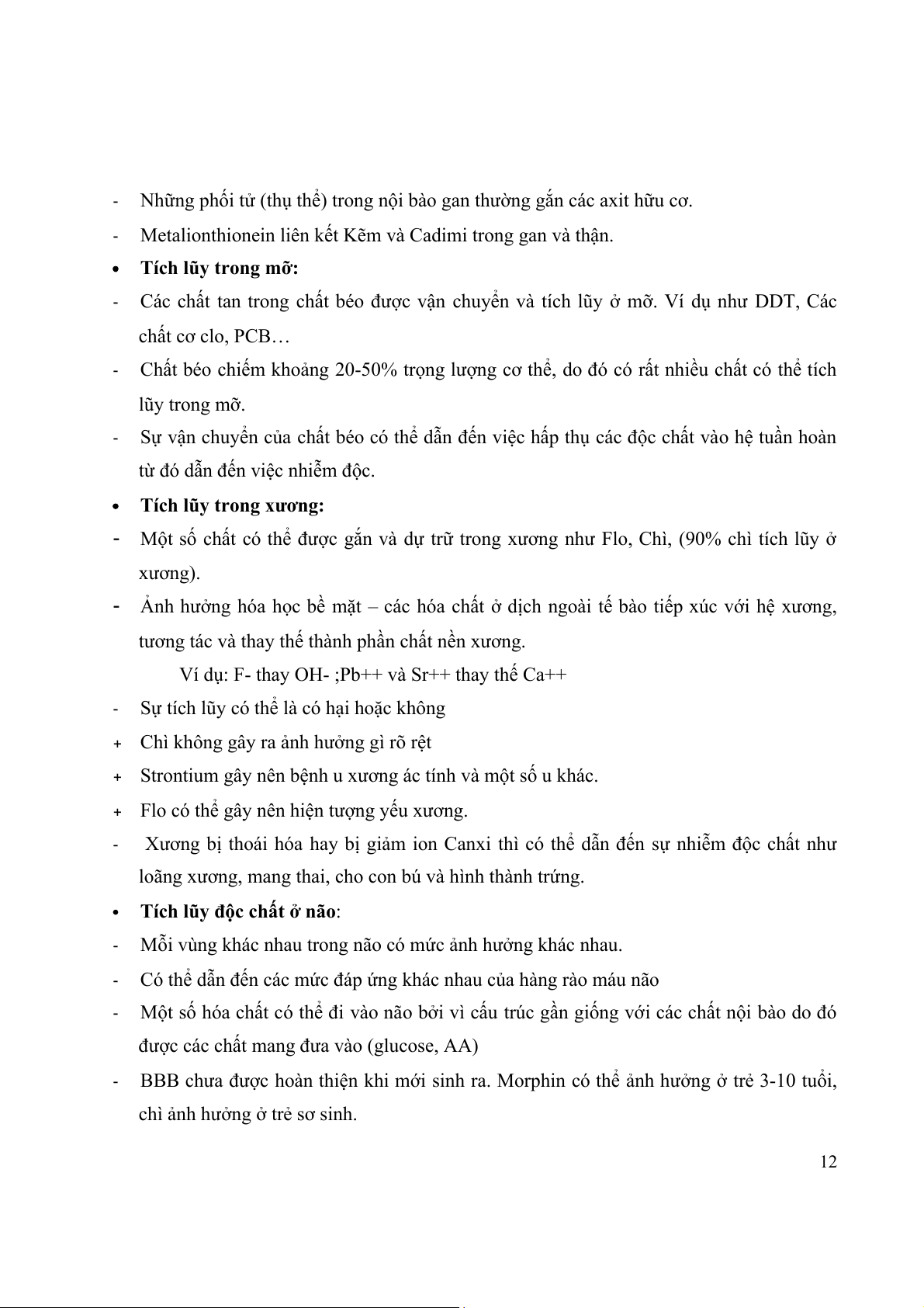 + Lan truyền hóa chất trong cơ thể liên quan đến các yếu tố ảnh hưởng đến sự lắng đọng