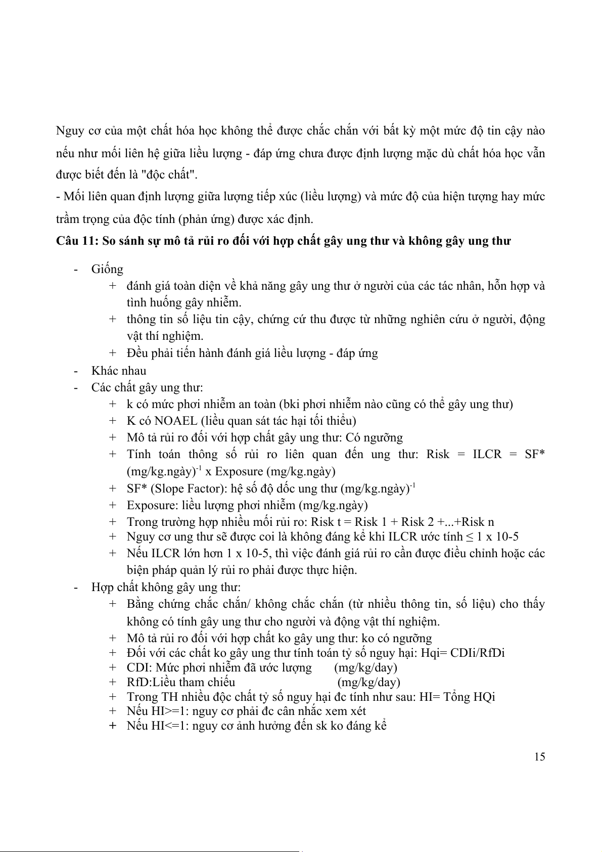 Câu 11: So sánh sự mô tả rủi ro đối với hợp chất gây ung thư và không gây ung thư - Giống
