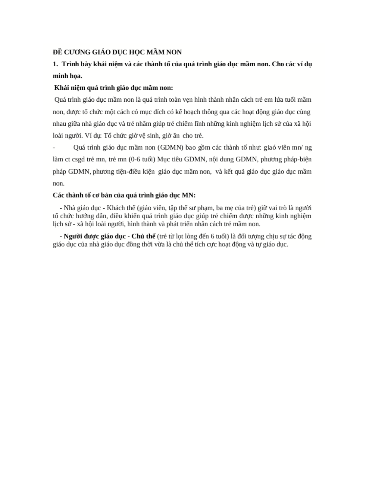 Đề cương giáo dục học mầm non. Tài liệu tổng hợp dược sưu tầm. Mời mọi người tham khảo