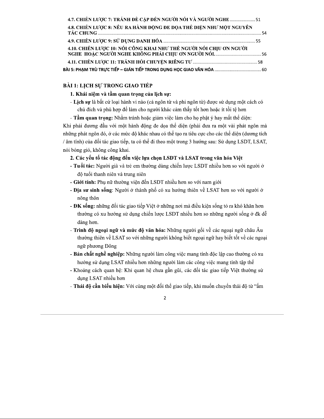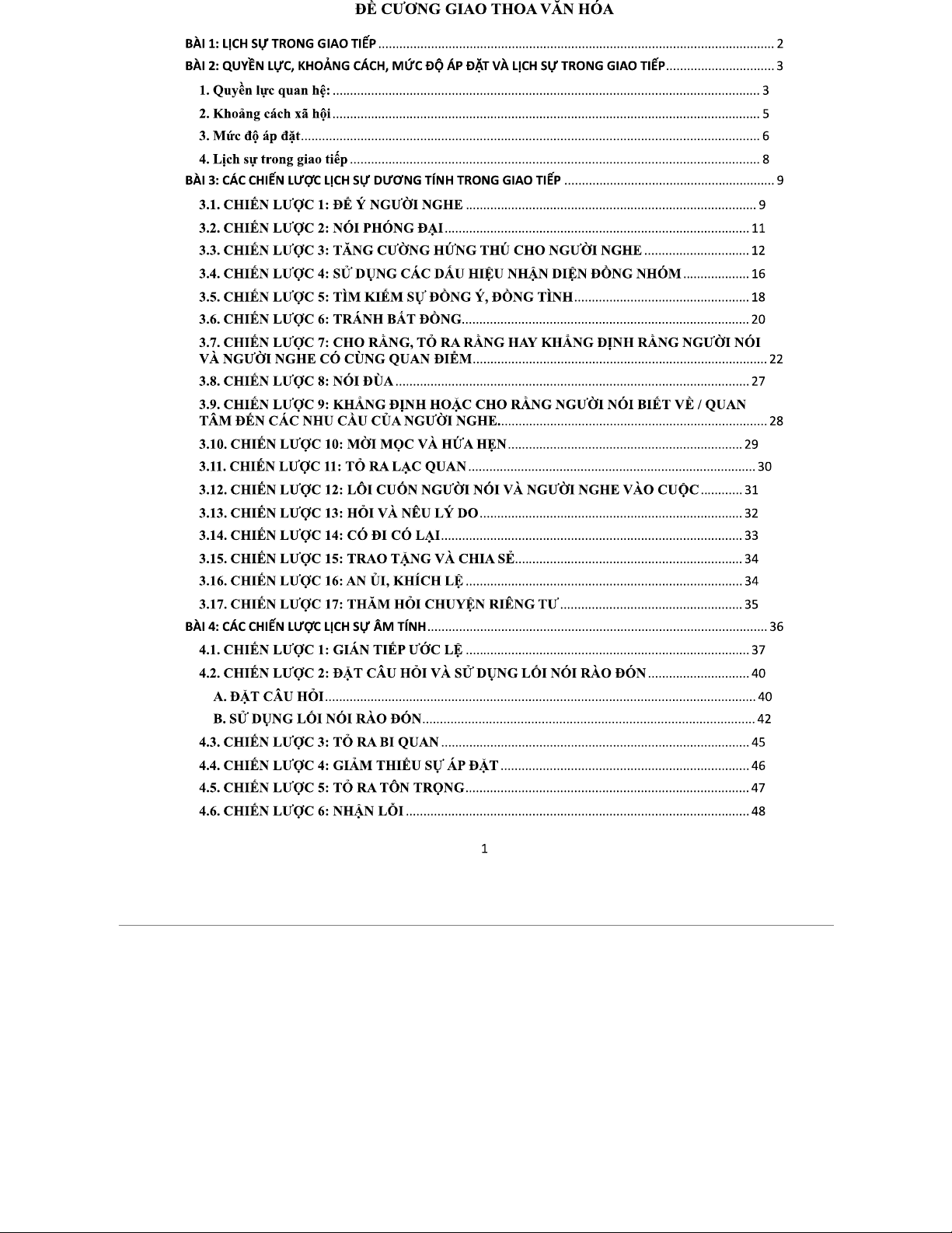 Đề cương Giao thoa Văn hóa: Chiến lược Giao tiếp & Lịch sự