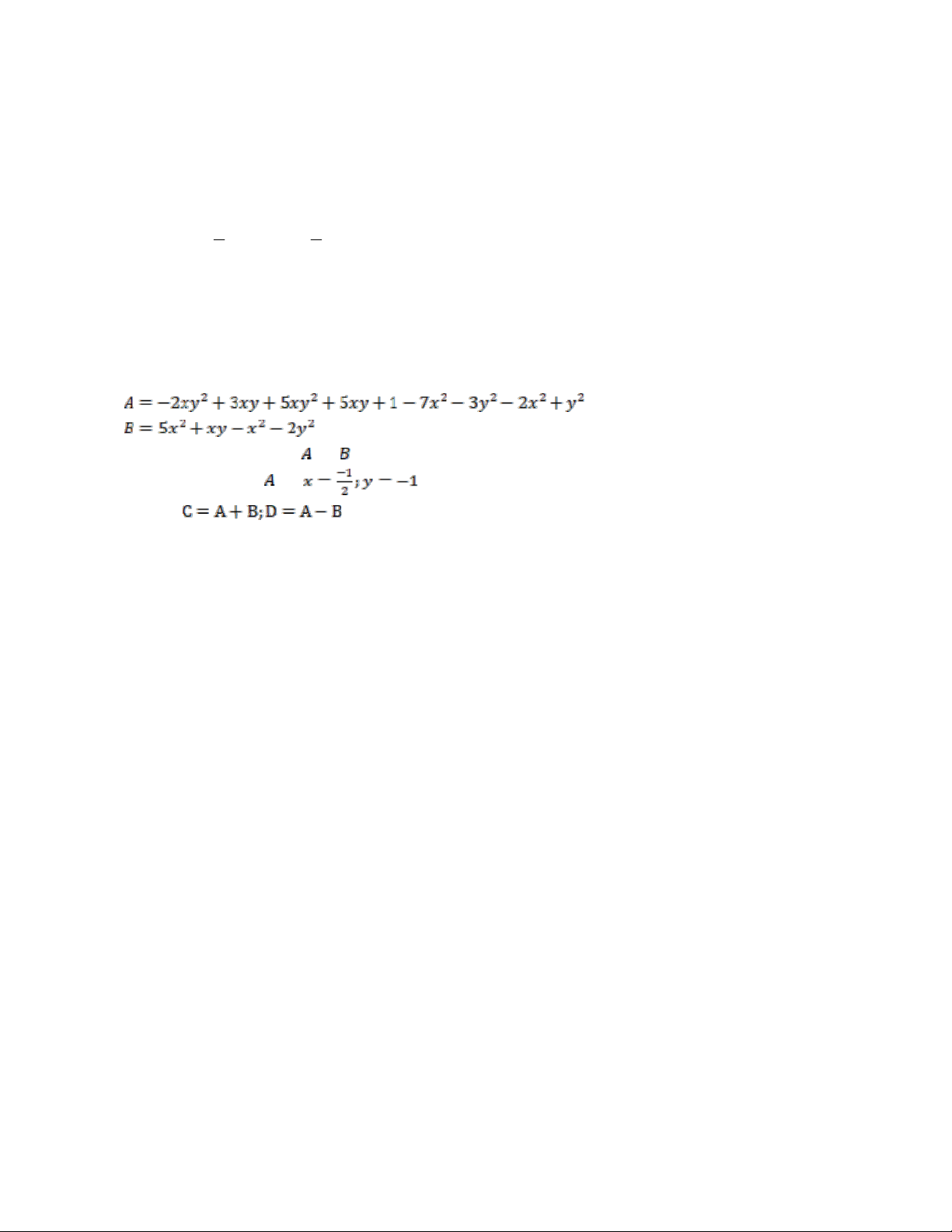 b. Tính giá trị của tại c. Tính Bài 3: Cho các đa thức: 2 2 3 2 2 2 3 2