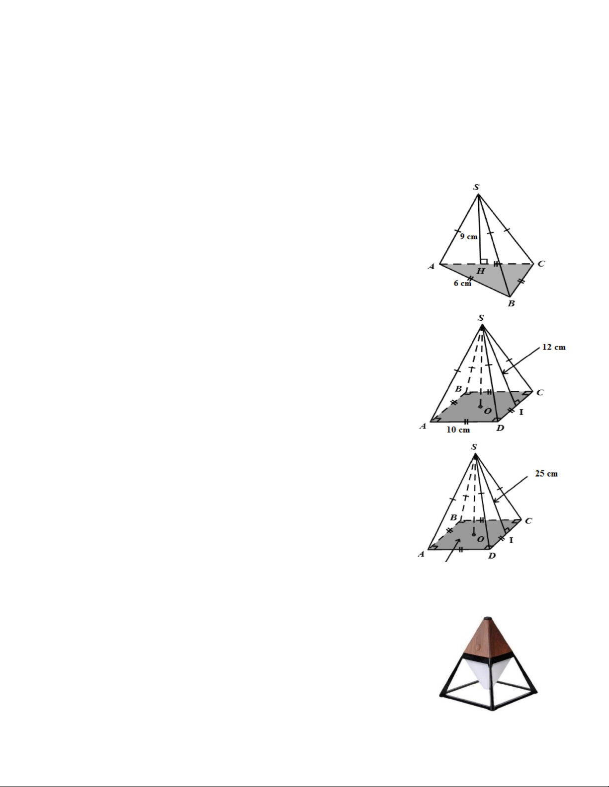 Bài 21. Đèn để bàn hình kim tự tháp có dạng hình chóp tứ giác đều có cạnh đáy bằng 25 cm, chiều cao của đèn là 36 cm.