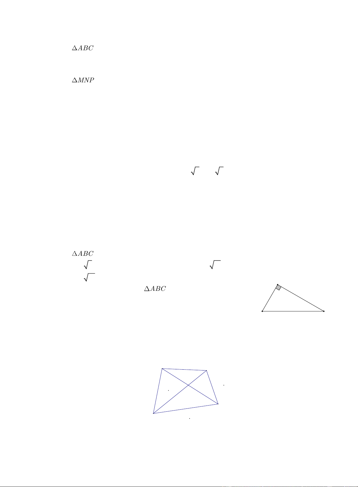 Câu 47. Cho ABC vuông cân tại A , AB = AC = 3 cm . Khi đó độ dài của đoạn BC là: A. BC = 9 c m B. BC = 18 c m C. BC = 12 cm D. BC = 6 c m A