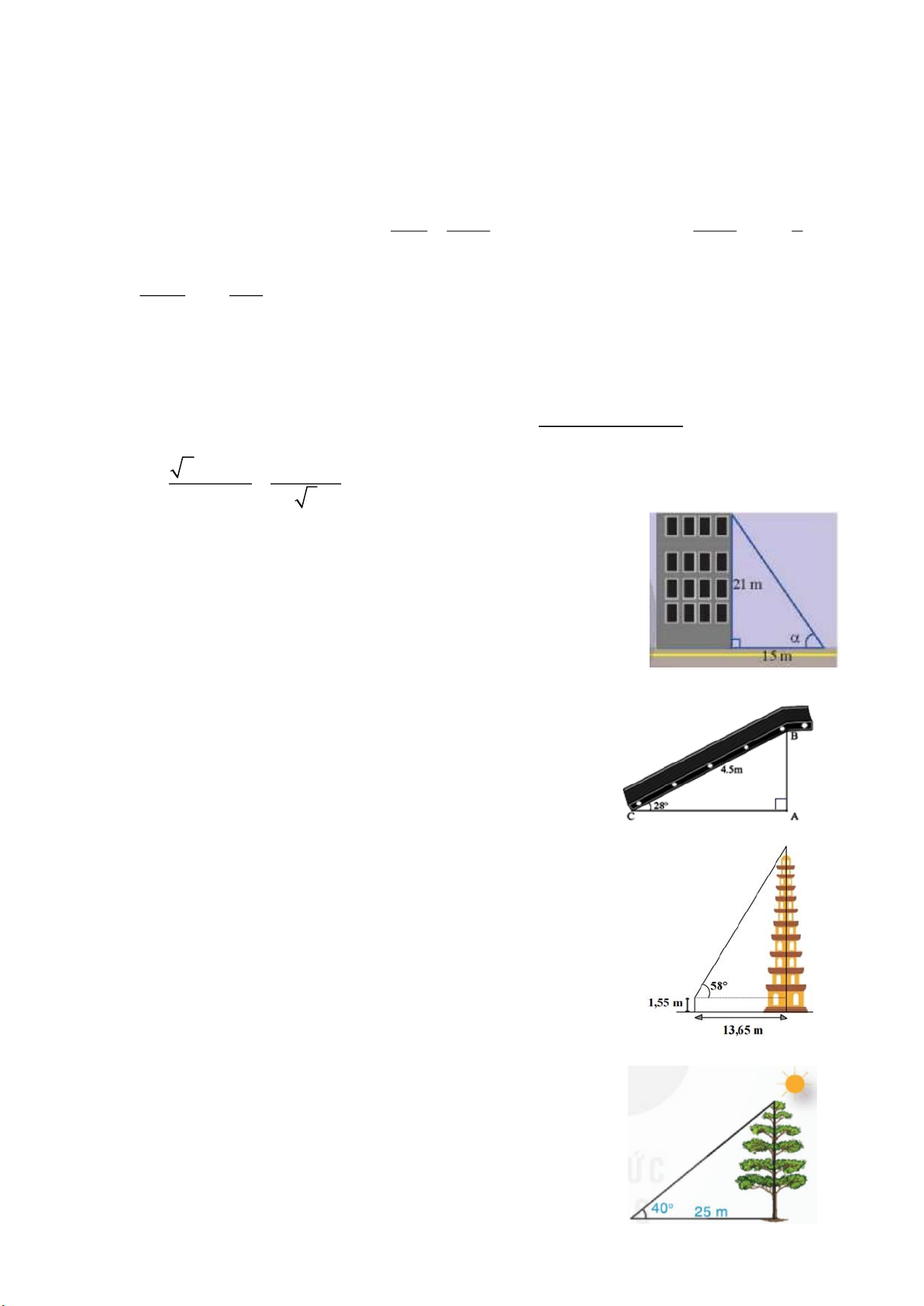 góc . Cho biết tòa nhà cao 21 m và bóng của nó trên mặt đất dài