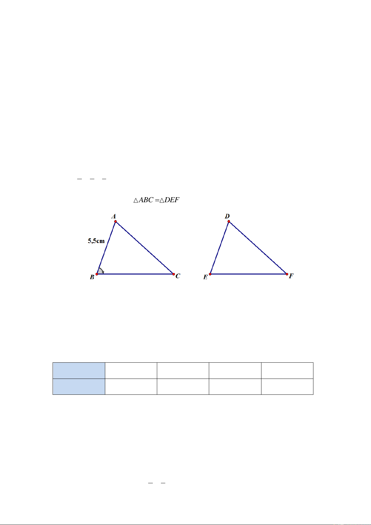 Câu 3: Cho hình vẽ sau. Biết ABC DEF . Số đo của góc B là : ……………………….. 540 700