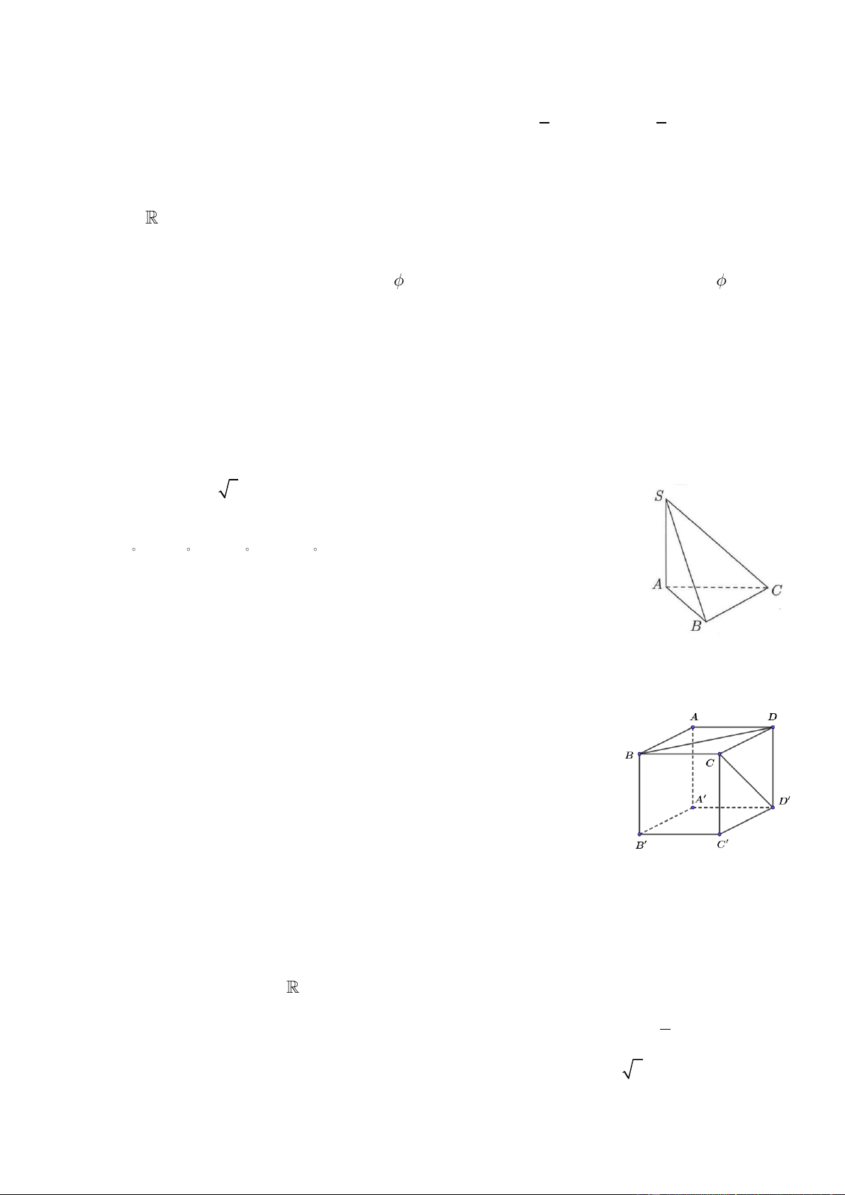 Câu 9. Cho hình chóp S.ABC có đáy là tam giác vuông tại B, SA vuông góc với đáy và SA = AB = ;