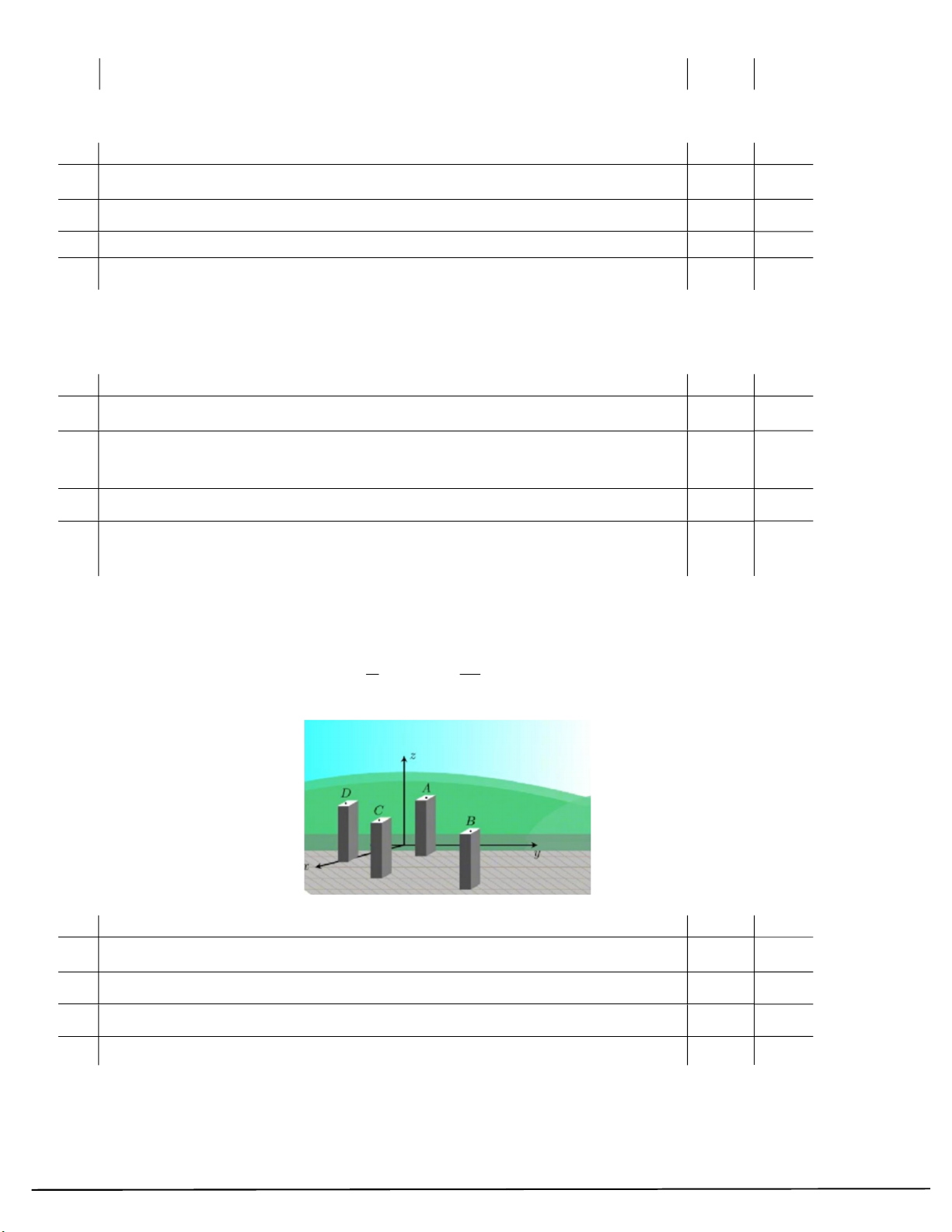 Câu 87: Hình vẽ một khu nhà đang xây dựng được gắn hệ trục tọa độ Oxyz . Mỗi cột bê tông có dạng hình