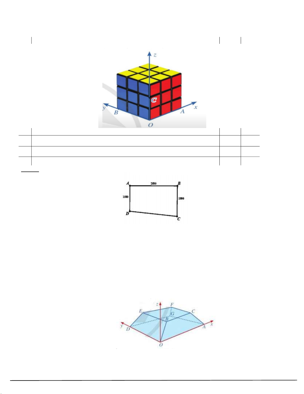 Câu 88: Khối rubik được gắn với hệ tọa độ Oxyz có đơn vị bằng độ dài cạnh của hình lập phương nhỏ. Xét