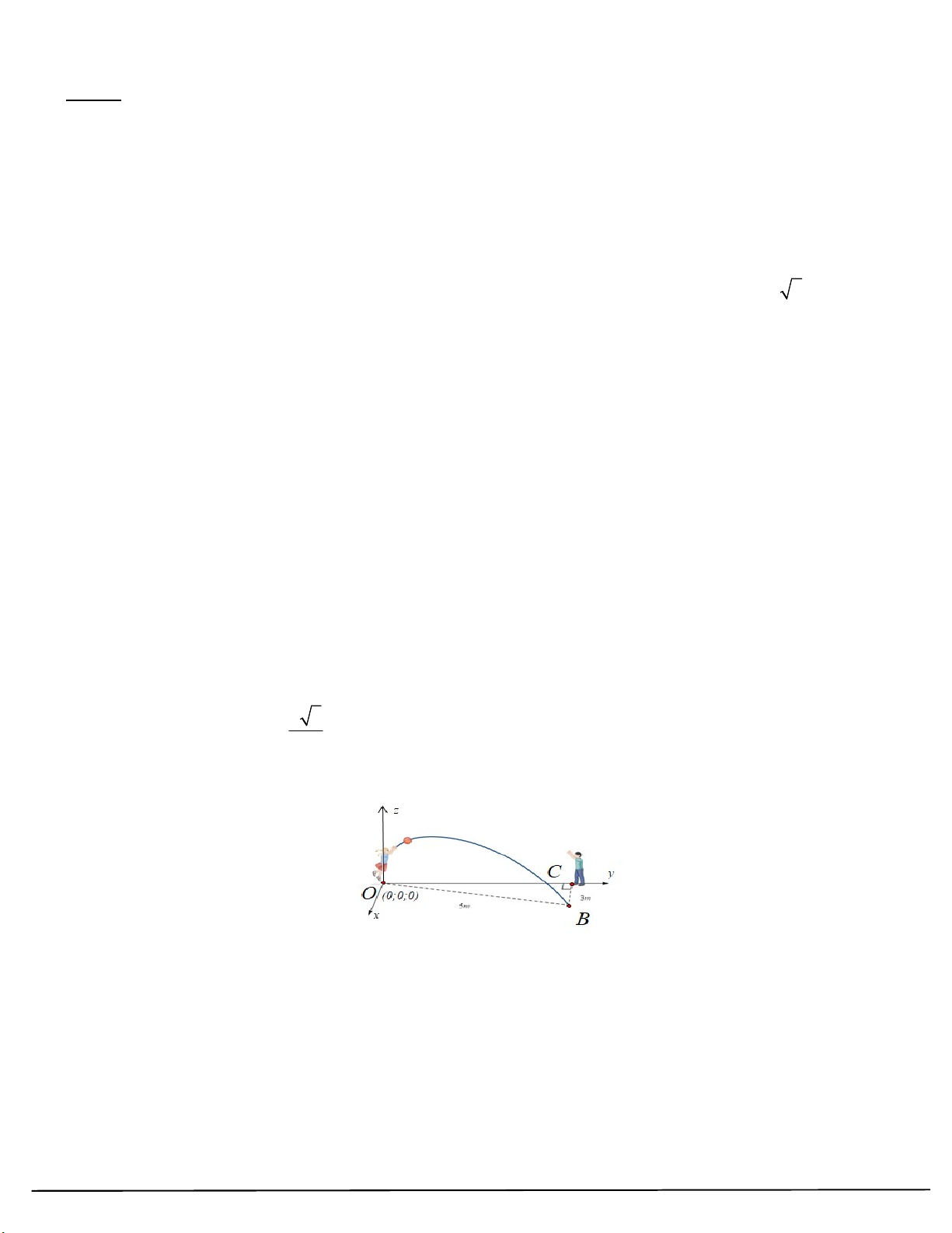 với nhau. Mặt sân OAGD là hình chữ nhật và được gắn hệ trục Oxyz như hình vẽ dưới (đơn vị trên