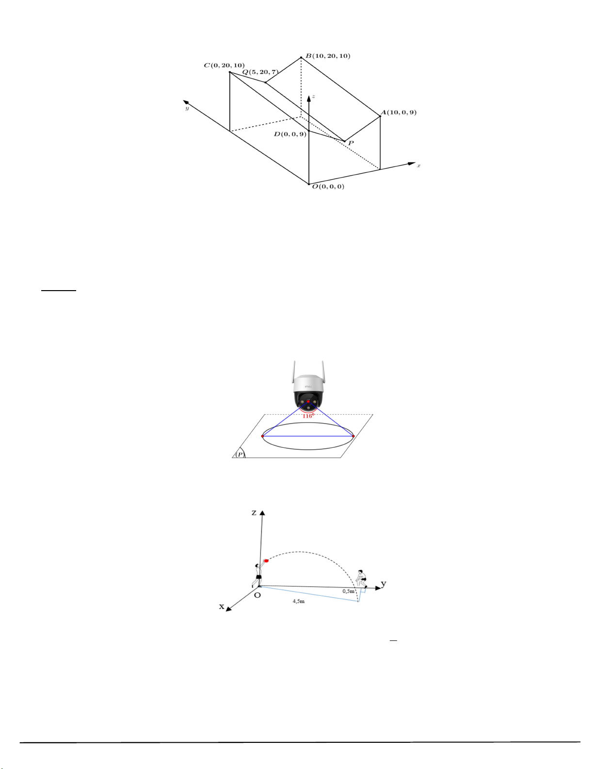 Câu 107: Biết góc quan sát ngang của một camera là 116 . Trong không gian Oxyz , camera được đặt tại điểm
