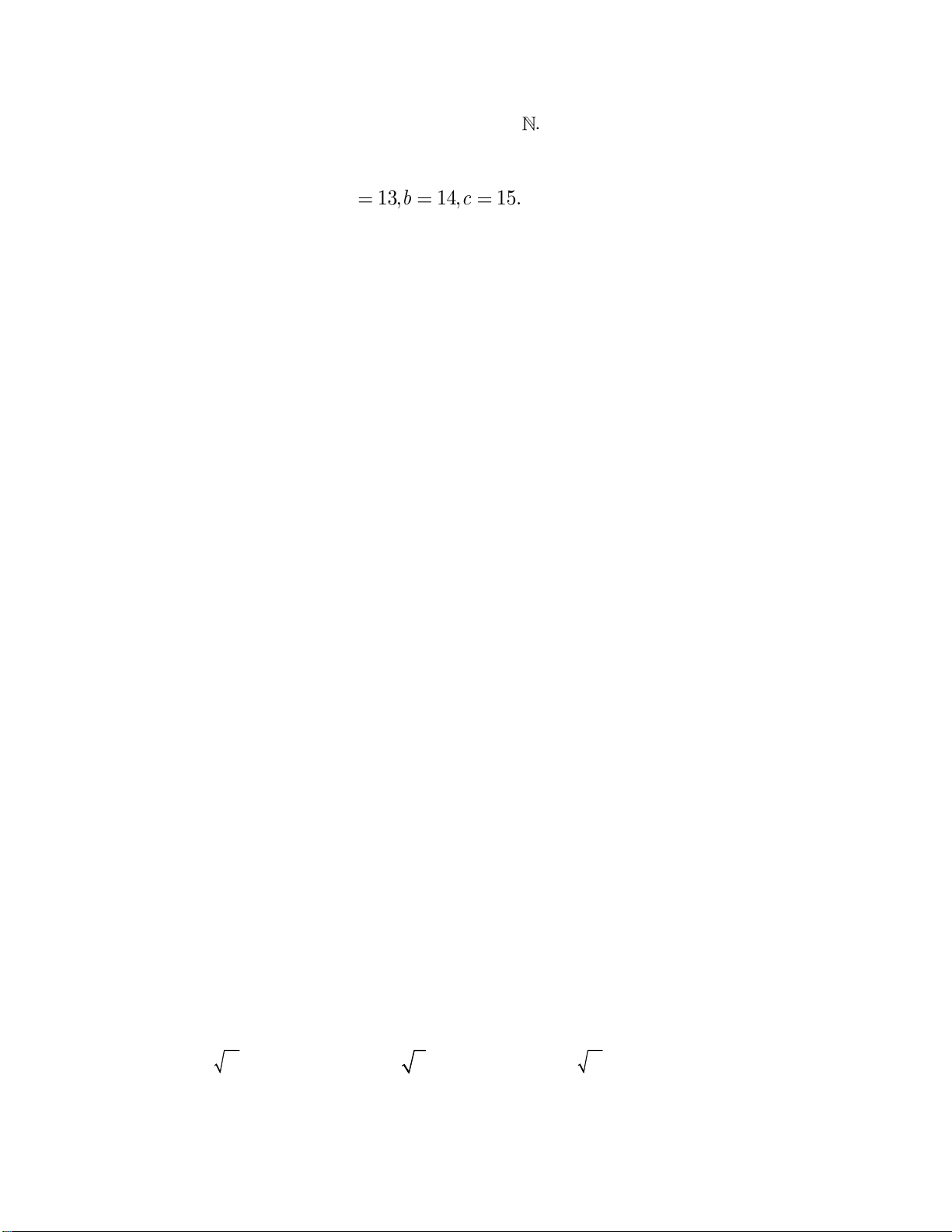 Câu 3. Tính diện tích tam giác có ba cạnh lần lượt là 5 , 12 , 13 . A. 34 . B. 7 5 . C. 60 . D. 30 .