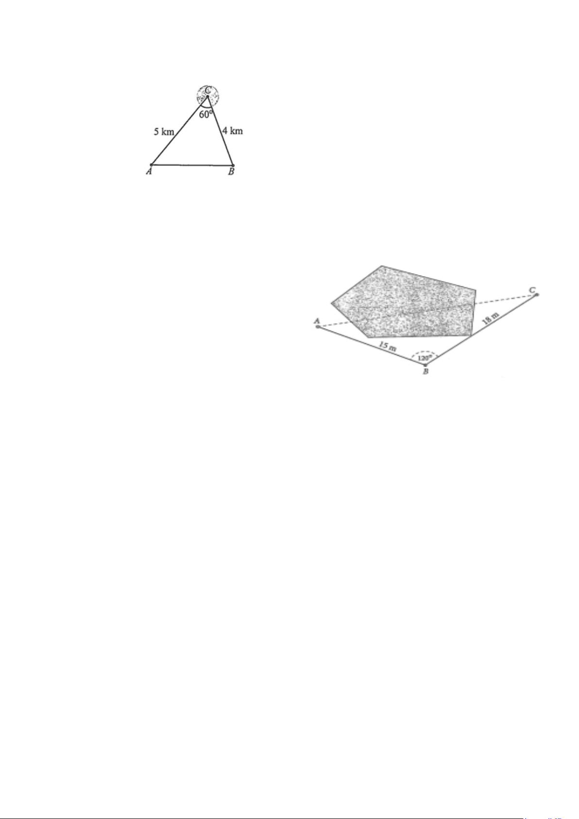 5 km, CB = 4km, , và góc ACB = 600. Tính khoảng cách giữa hai địa điểm , A B theo đường