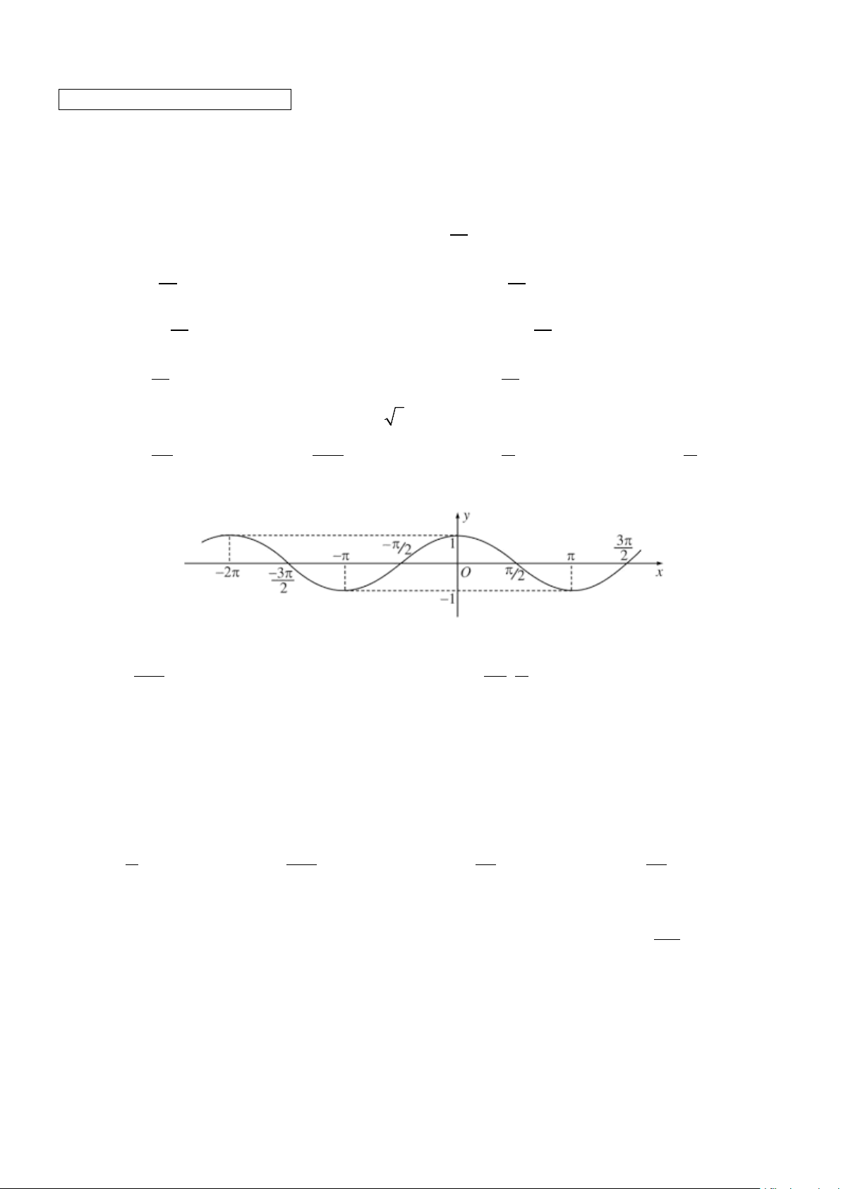 Câu 3. Cho đồ thị hàm số lượng giác ở hình sau