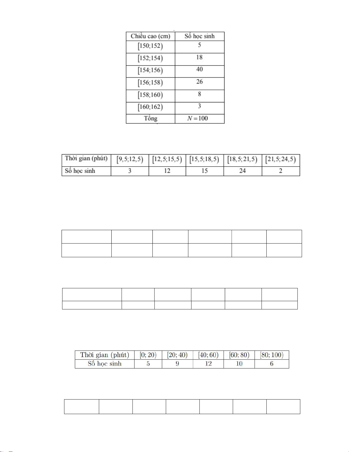 Câu 68: Điều tra về chiều cao của 100 học sinh lớp 10 của một trường THPT, ta được kết quả: