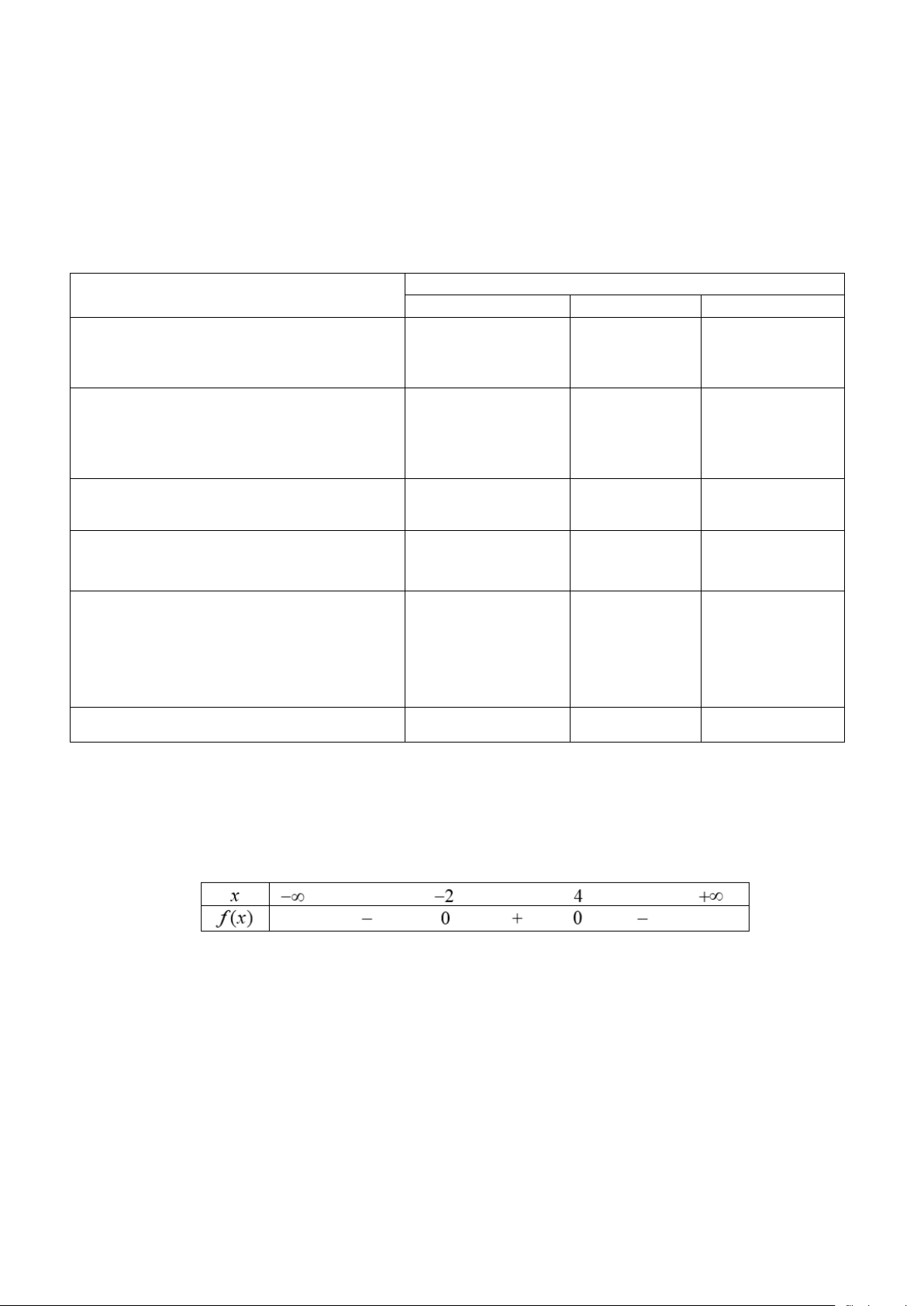 Câu 1. Hãy xác định tam thức bậc hai có bảng xét dấu như sau: A. 2