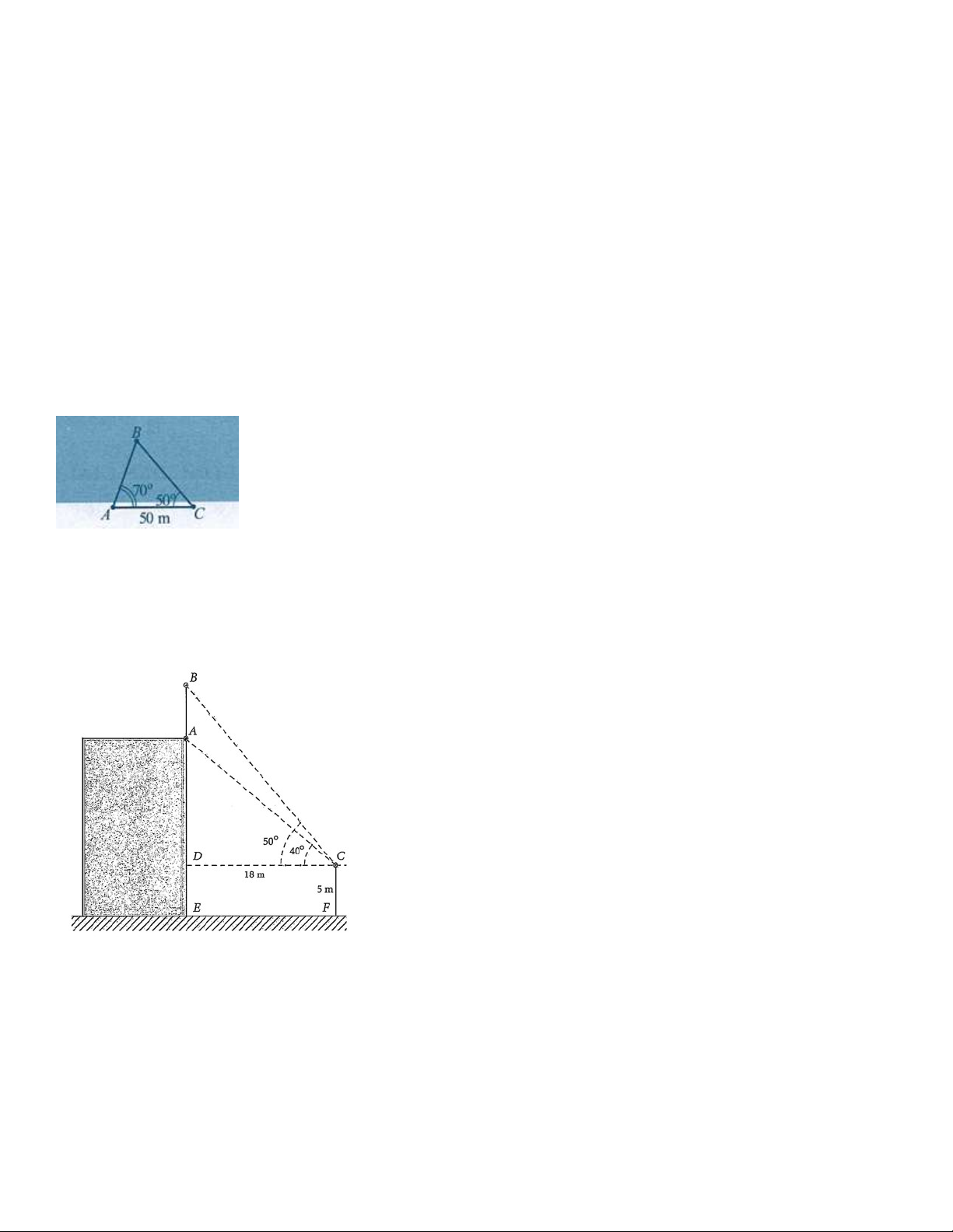 đi dọc bờ sông từ vị trí A đến vị trí C cách A một khoảng bằng 50 m và đo các góc BCA 50 . (Hình). Tính
