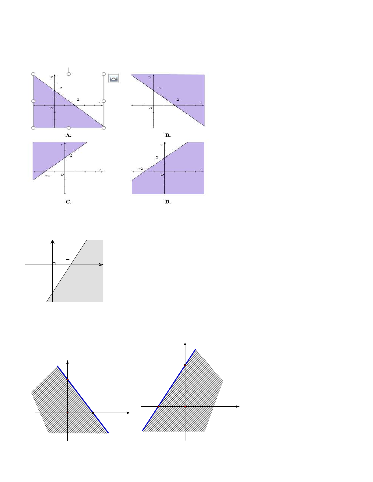 Câu 8. Miền nghiệm của 3x 2 y 6 (không bị gạch) được biểu diễn bởi hình vẽ nào dưới đây? y y A. 3 B. 2 O x 2 O x 3