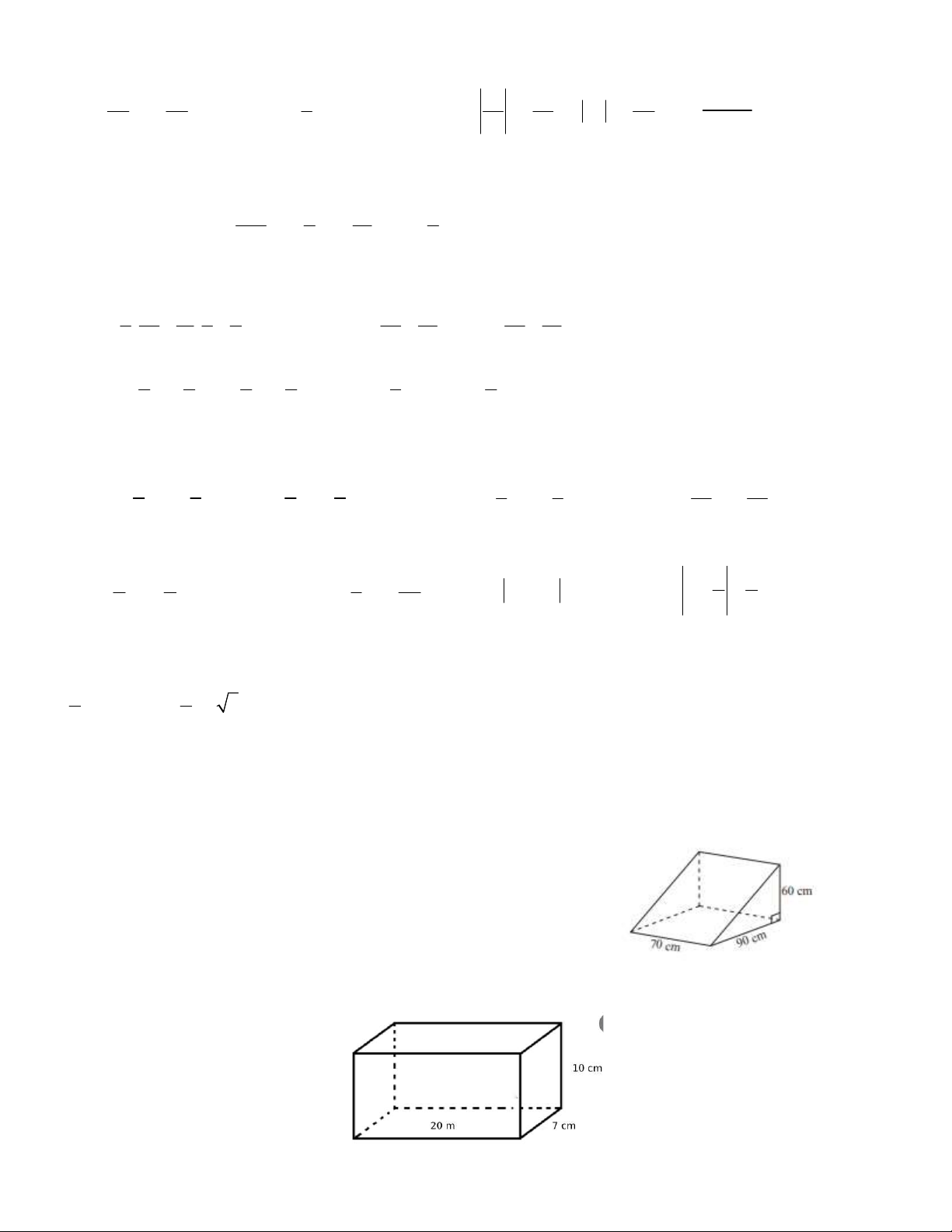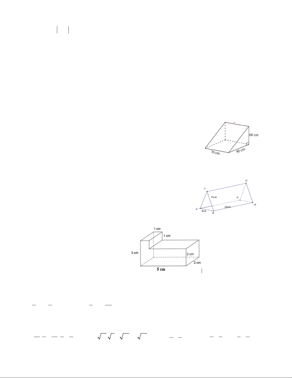 Thể tích hình lăng trụ đó bằng: A. 16 cm3 B. 20 cm3 C. 26 cm3 D. 22 cm3 B/ TỰ LUẬN Bài 1: So sánh 2 1 2 5 a) và b) 1 và c) 300 2 và 200 3 d) 3,1(21) và 3,(12) 3 2 3 4