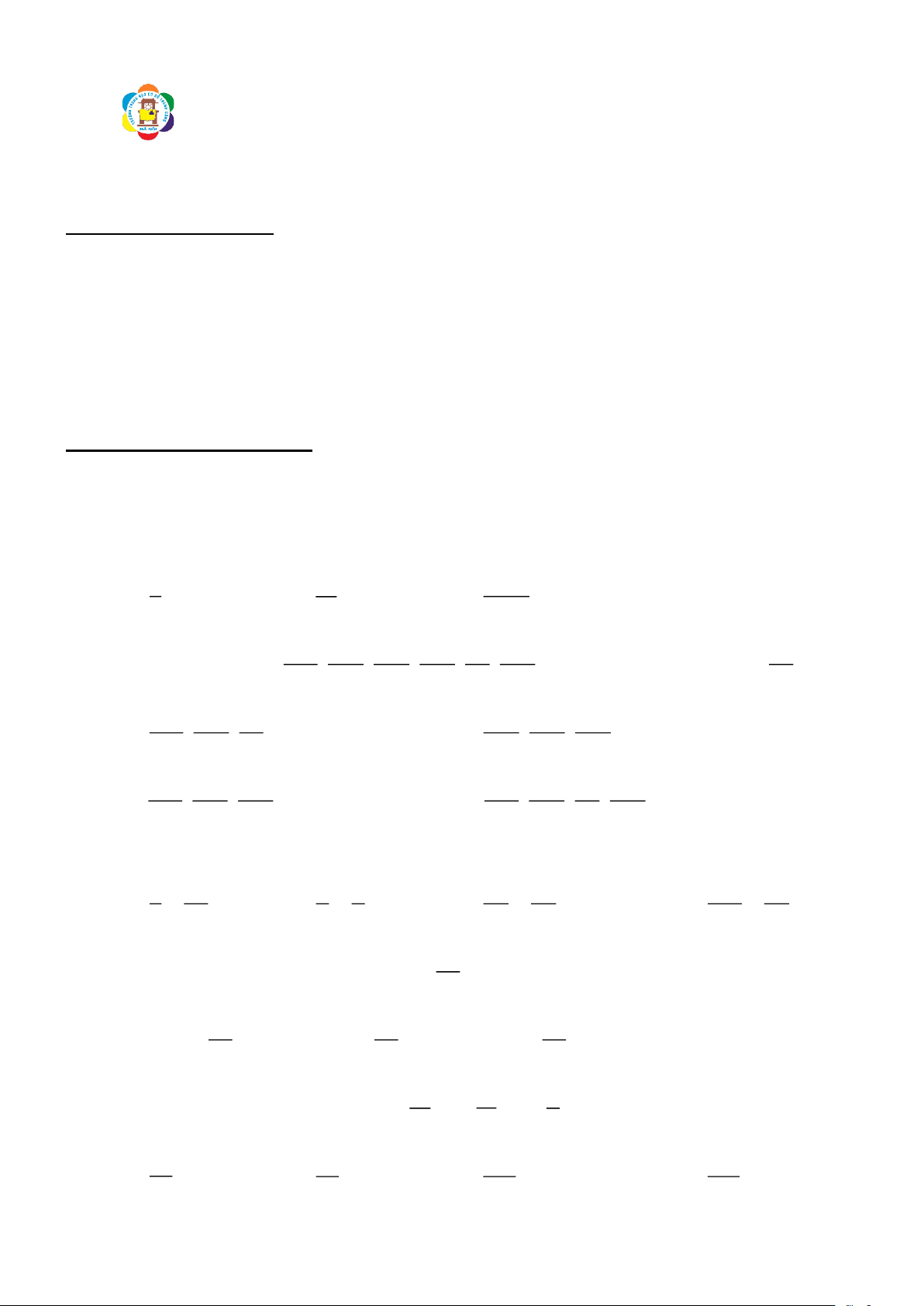Câu 5. Chu vi tam giác có độ dài ba cạnh cm; cm; cm bằng: 4 3 2 33 33 137 135 A. cm B. cm. C. cm. D. cm. 9 12 12 12