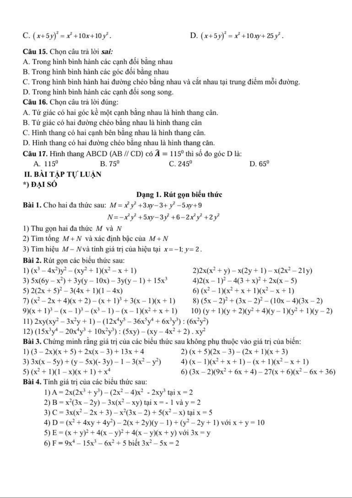 Chủ đề: Đề cương Toán 8 12 tài liệu
