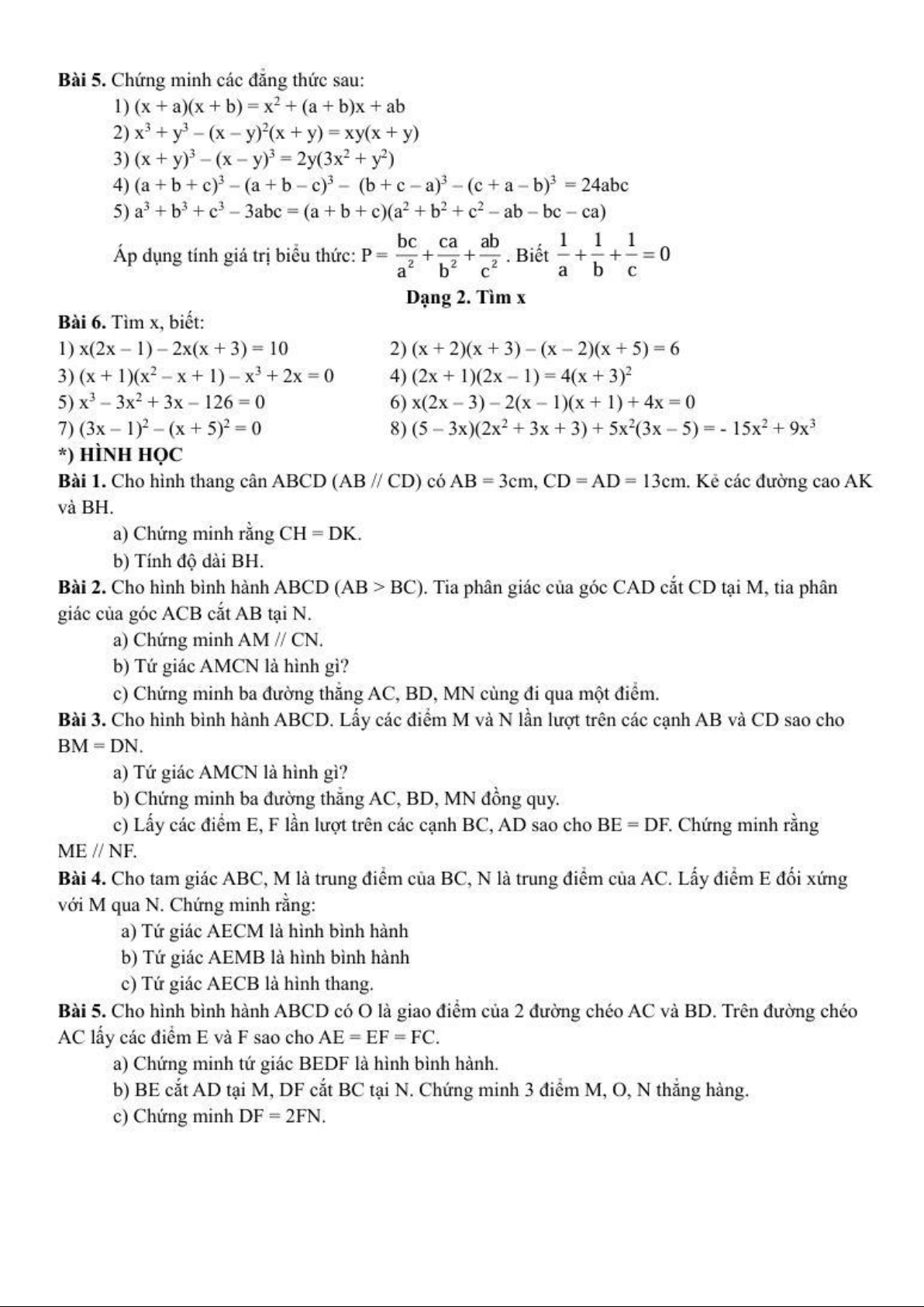 Đề cương giữa kì 1 Toán 8 năm 2025 – 2026 trường PT Thực hành Sư phạm – Đồng Nai