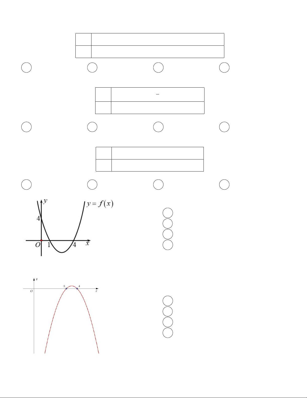 Câu 5.3: Cho hàm số y = f (x) = ax2 + bx + c có bảng biến thiên sau. Đặt ∆ = b2 − 4ac, tìm dấu của a và ∆. x −∞ 1 +∞ f (x) − 0 −