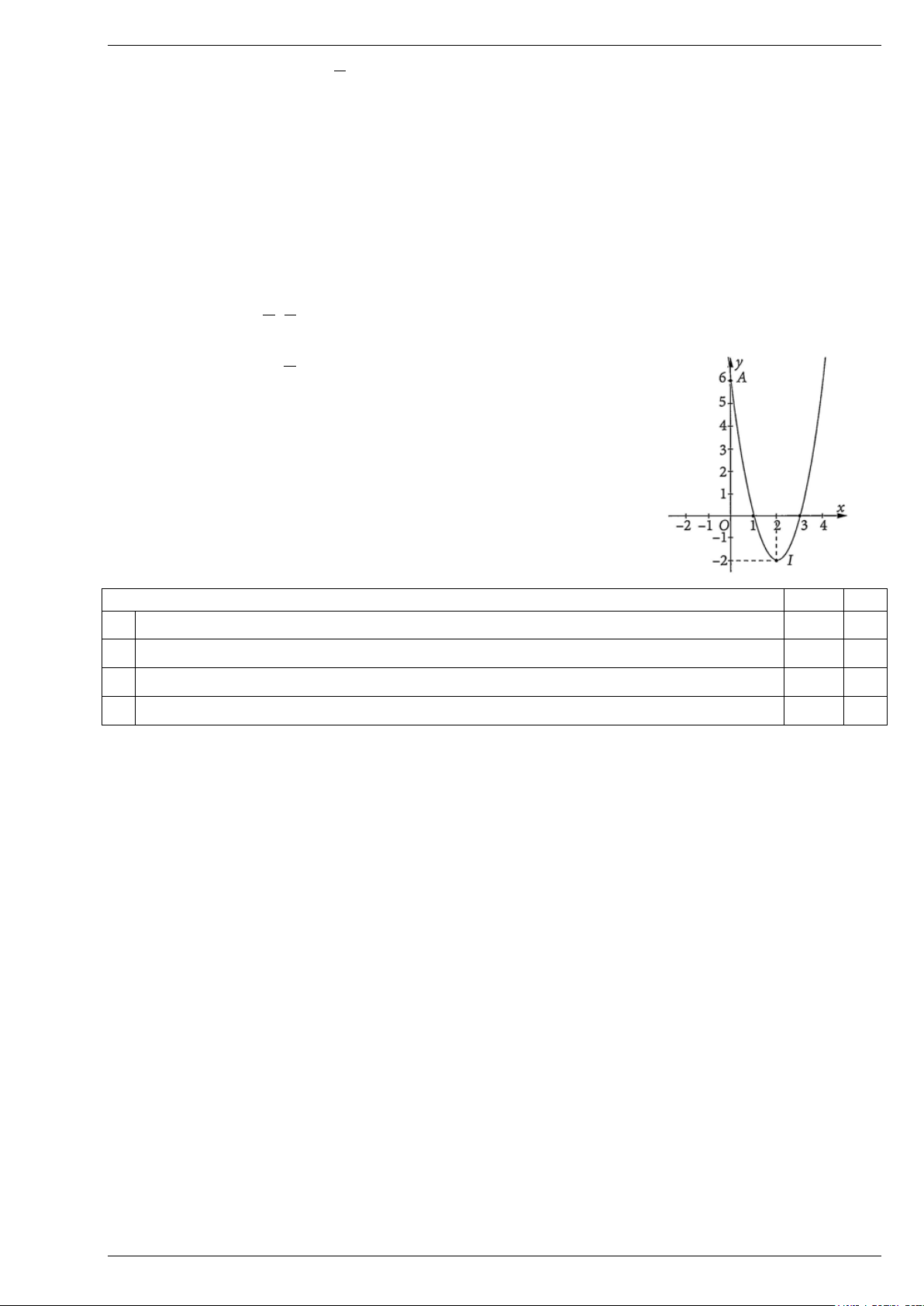 d) Đồ thị đi qua các điểm Q(1;6) và P( 3 − ;6) . Lời giải 10