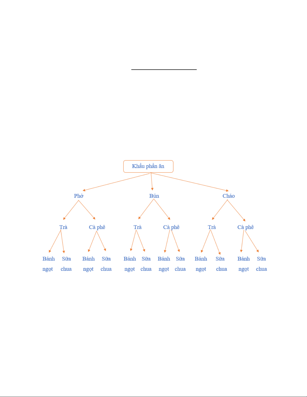 Câu 2: Sơ đồ hình bên dưới cho biết các loại thức ăn sáng và thức uống của một nhà hàng. Hỏi
