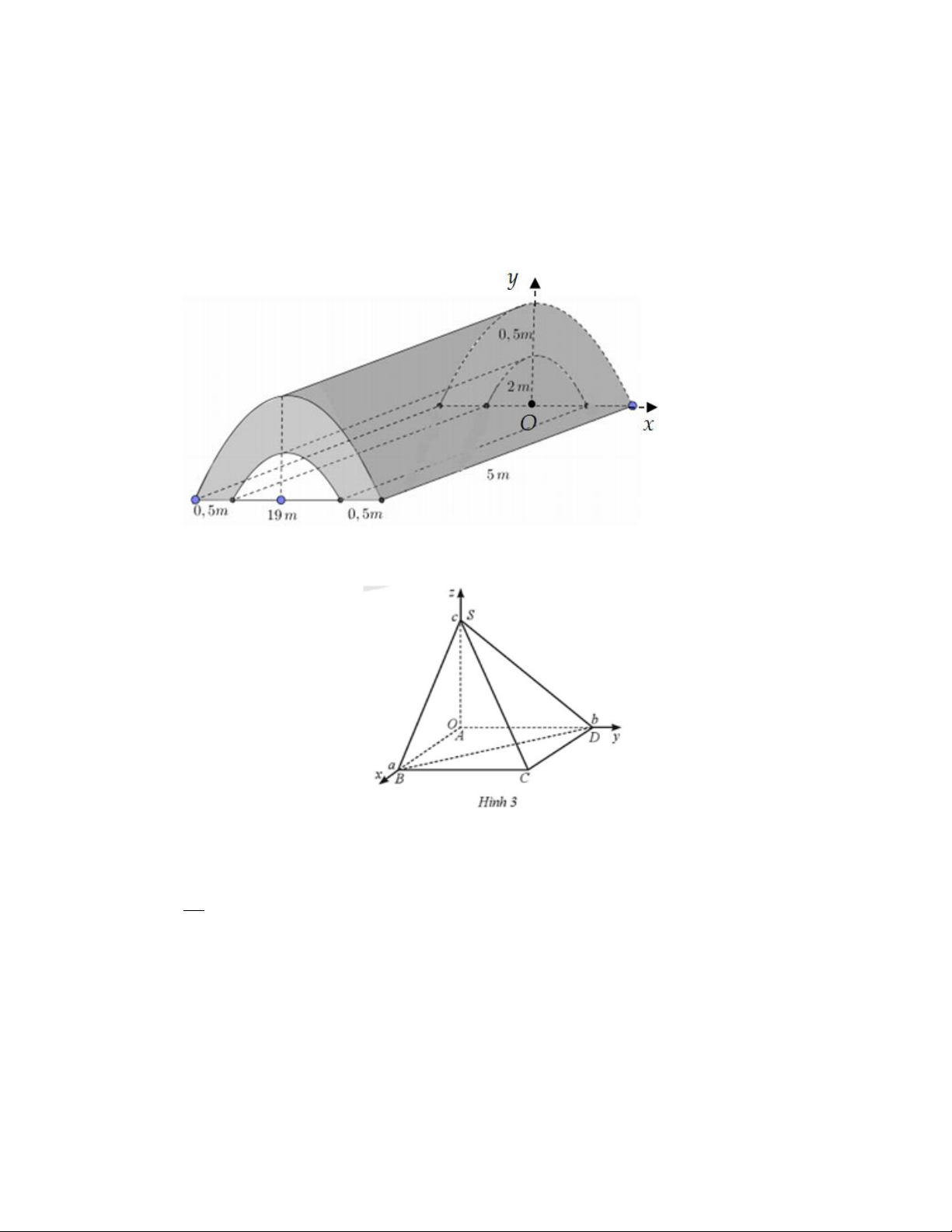 Câu 3. Mặt trong của một hầm biogas có hình dạng là một phần của mặt cầu đã cắt bỏ hai phần của nó bằng hai