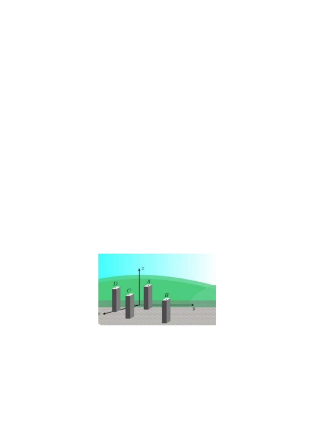 Câu 4. Hình vẽ một khu nhà đang xây dựng được gắn hệ trục toạ độ Oxyz . Mỗi cột bê tông có dạng