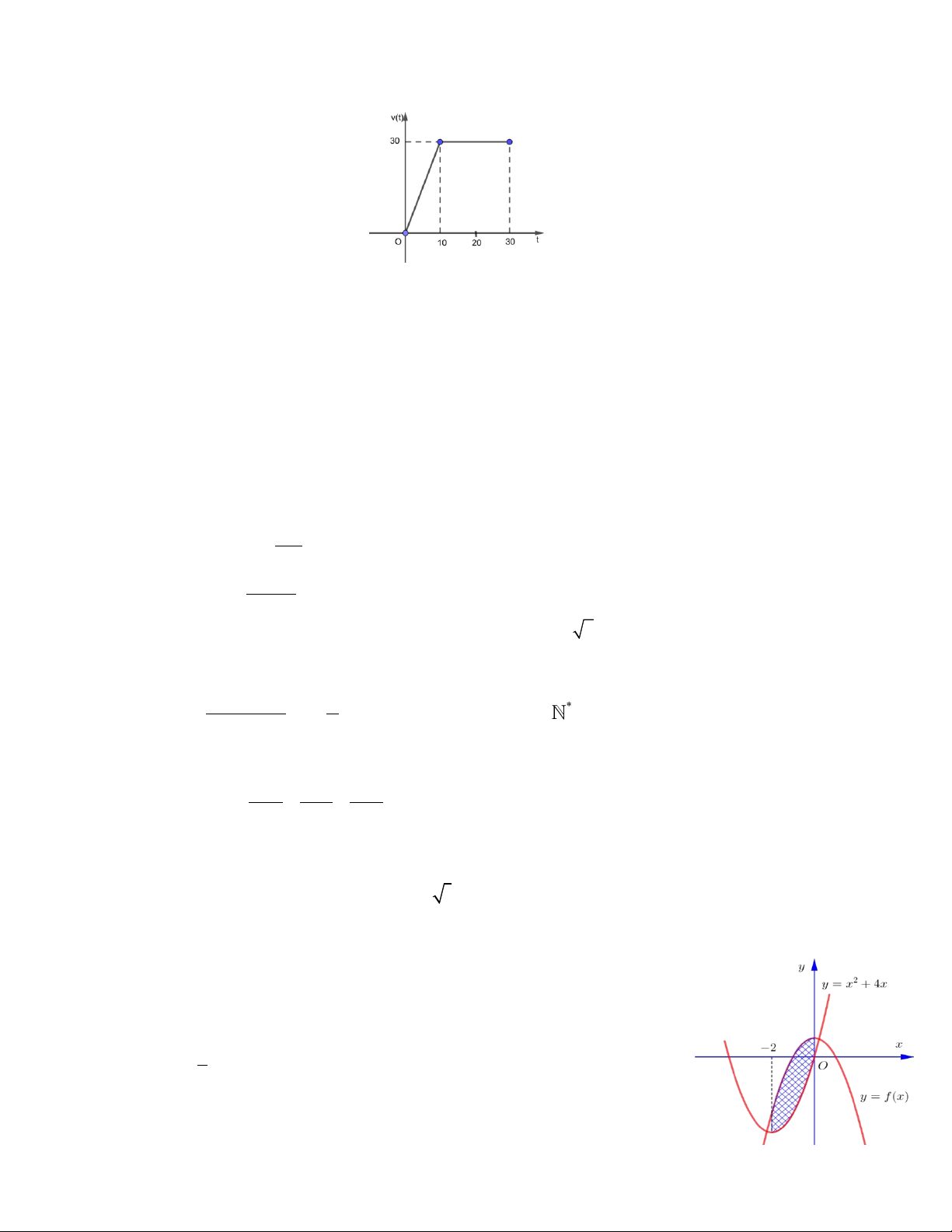 Câu 3: Một vật chuyển động thẳng với vận tốc v(t) (m / s) theo thời gian t(s) được cho bởi đồ thị như hình vẽ bên dưới: t t a) v (t) 3 khi 0 10 = . 30 khi10 t 30 10