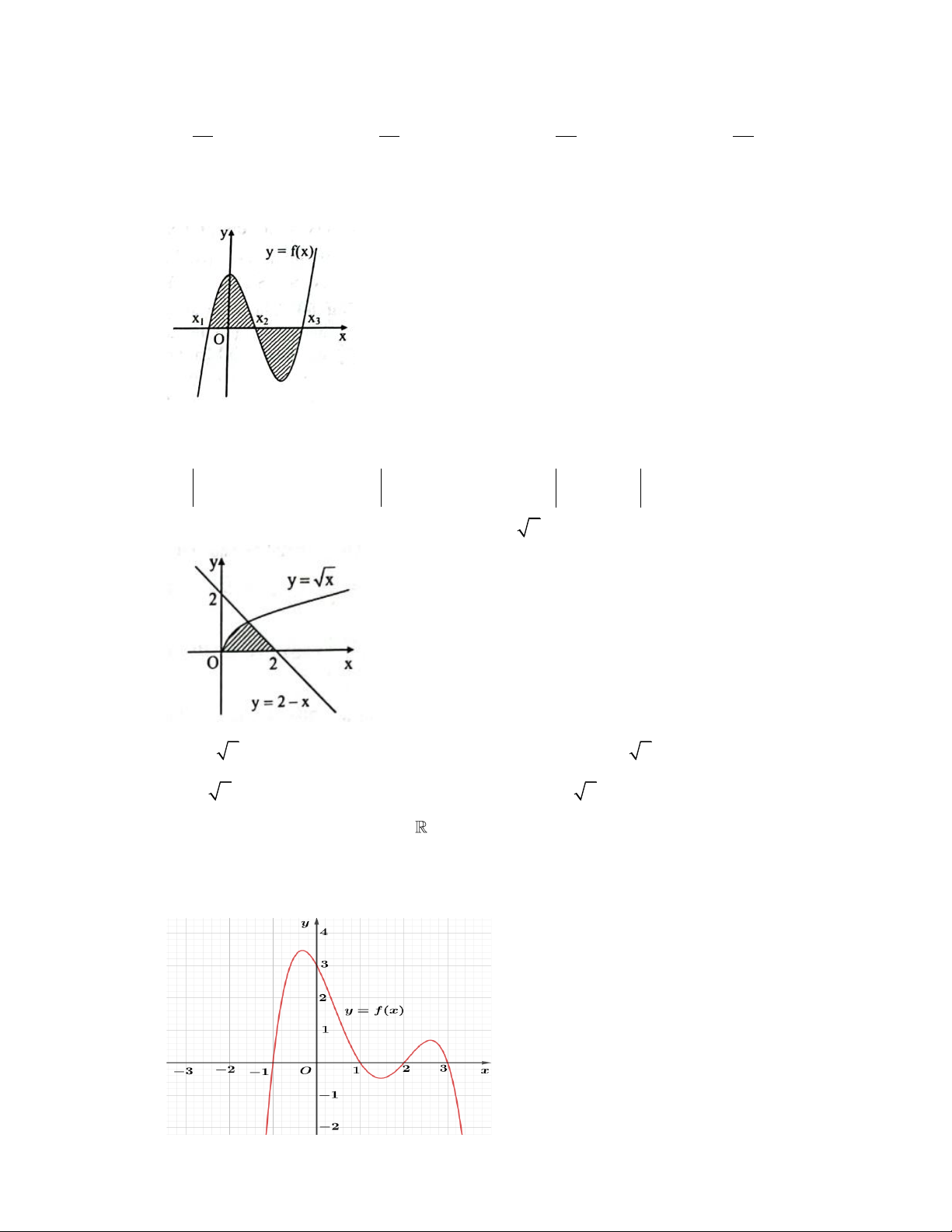 Câu 4: Phần hình phẳng (H ) được gạch chéo trong hình vẽ bên được giới hạn