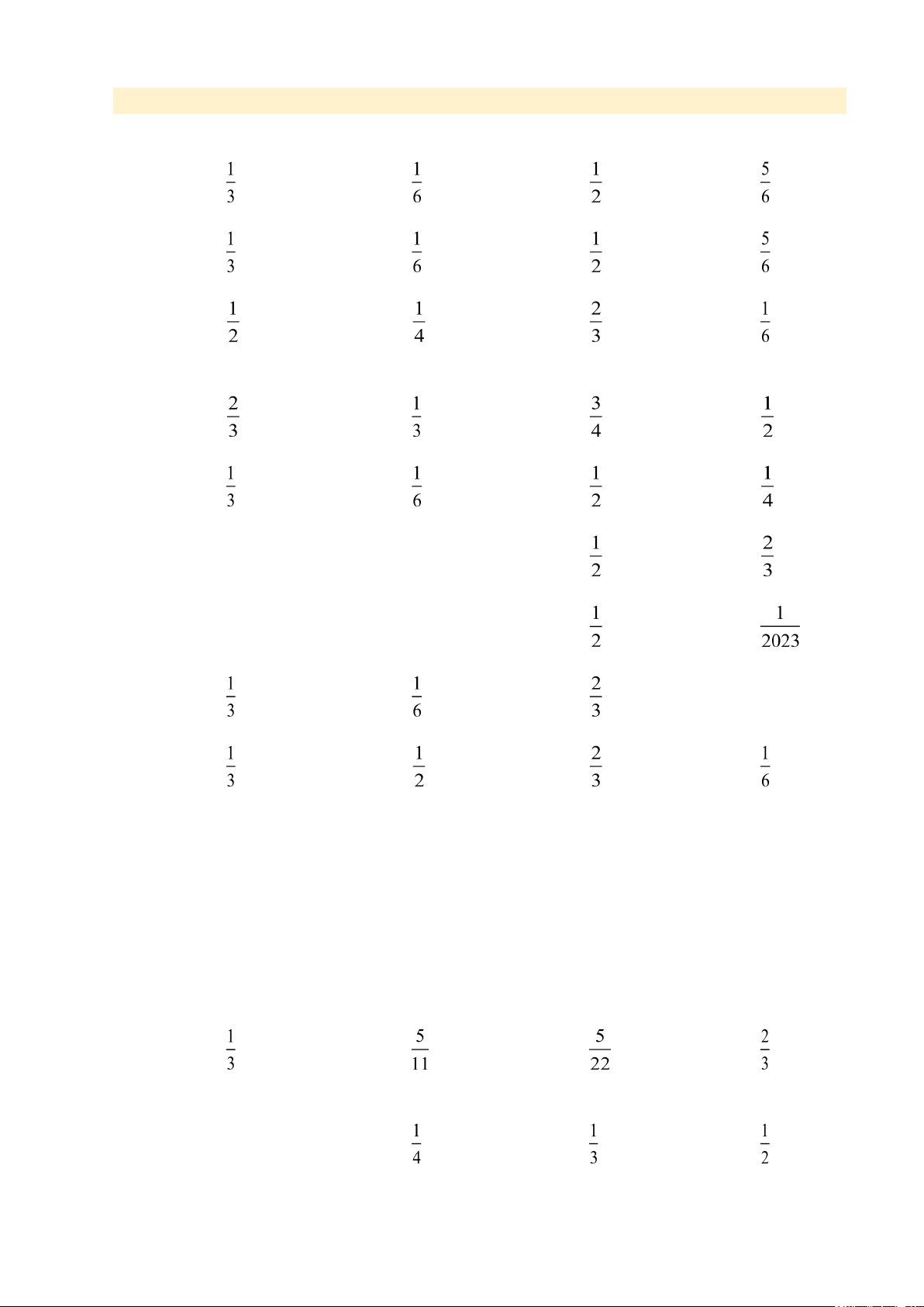 Câu 18: Xác suất của biến cố gieo được mặt có chấm là số nhỏ hơn 2023 bằng A. 1 B. 0 C. D.