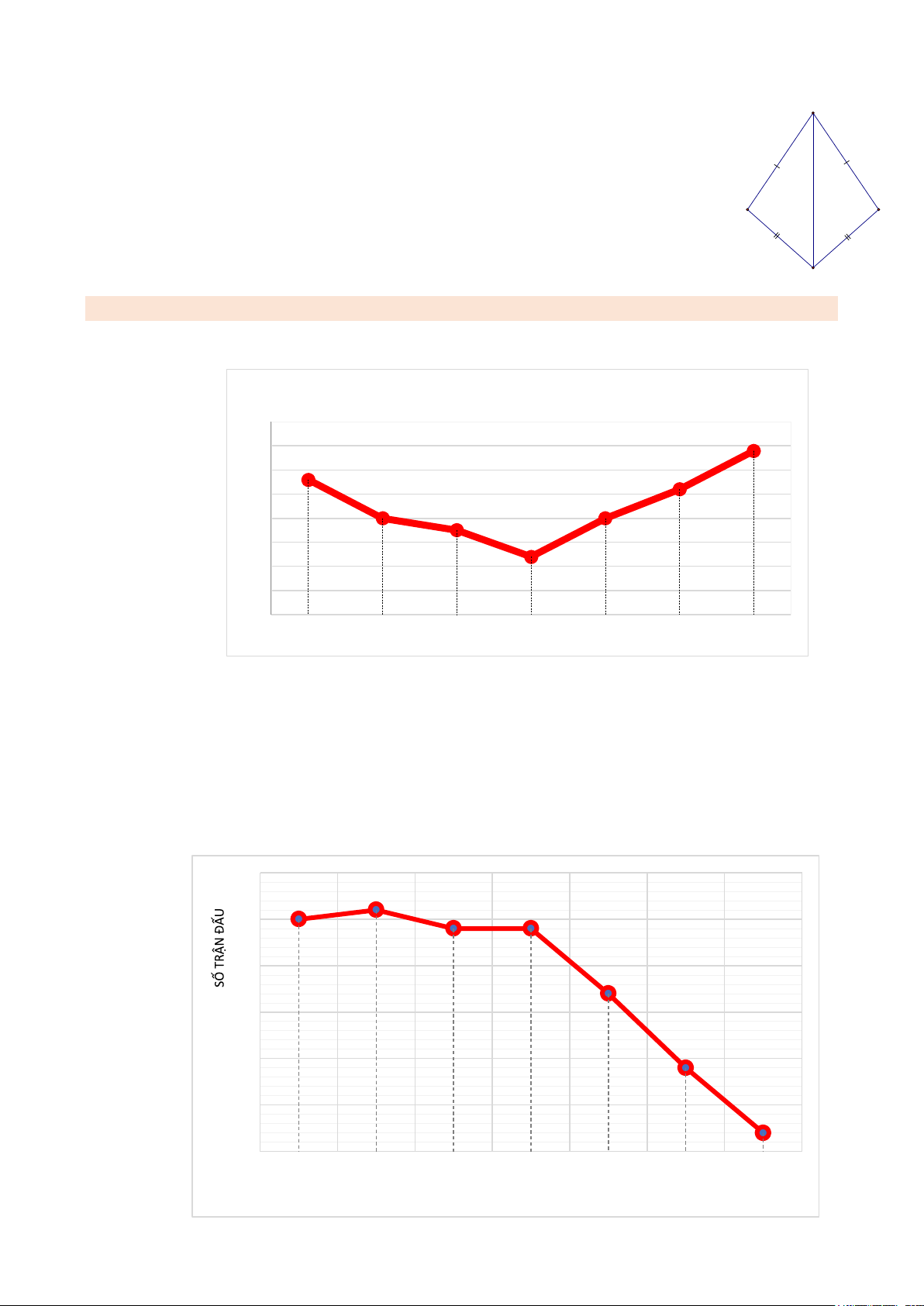 Bài 2: Biểu đồ sau biểu diễn số trận đấu của Quang Hải trong giải Vô Địch bóng đá Quốc Gia Việt Nam 30 25 26 24 24 25 20 17 15 9 10 5 2 0 2016 2017 2018 2019 2020 2021 2022 NĂM